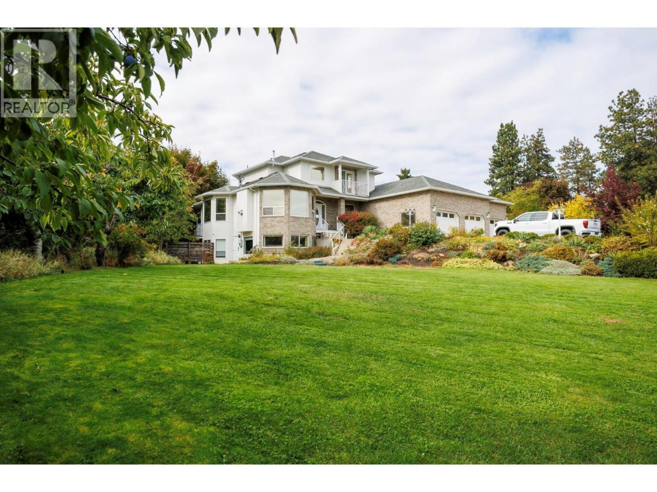 An extraordinary 2.69-acre countryside estate is surrounded by flourishing orchards, offering breathtaking panoramic views of the city skyline and shimmering lake. The residence blends timeless design with natural light, where soaring white ceilings and expansive windows capture stunning exposures from every direction. At the heart of the home, the open-concept living and dining areas seamlessly extend to a partially wrapped-around deck—perfect for entertaining or simply soaking in the views. The chef-inspired kitchen is positioned to overlook the magnificent landscape, while the primary suite provides a true sanctuary with direct access to the backyard, a private retreat space, and a spa-like ensuite designed for relaxation. With four additional bedrooms, a versatile flex room with lake views, and a balcony walkout, this home offers both functionality and luxury for families of all sizes. Outdoors, the ultra-private grounds boast lush green space—ideal for a pool, sports, or gatherings—while the expansive driveway leads to a triple car garage, a separate workshop, and ample parking for boats, RVs, or equipment. Adding to its appeal, a two-bedroom guest suite;complete with kitchen, laundry, and bathroom provides the perfect solution for extended family, guests, staff, or rental opportunities. A rare opportunity to own a private slice of paradise just minutes from local amenities—or enjoy a leisurely stroll to nearby wineries. (id:6769)