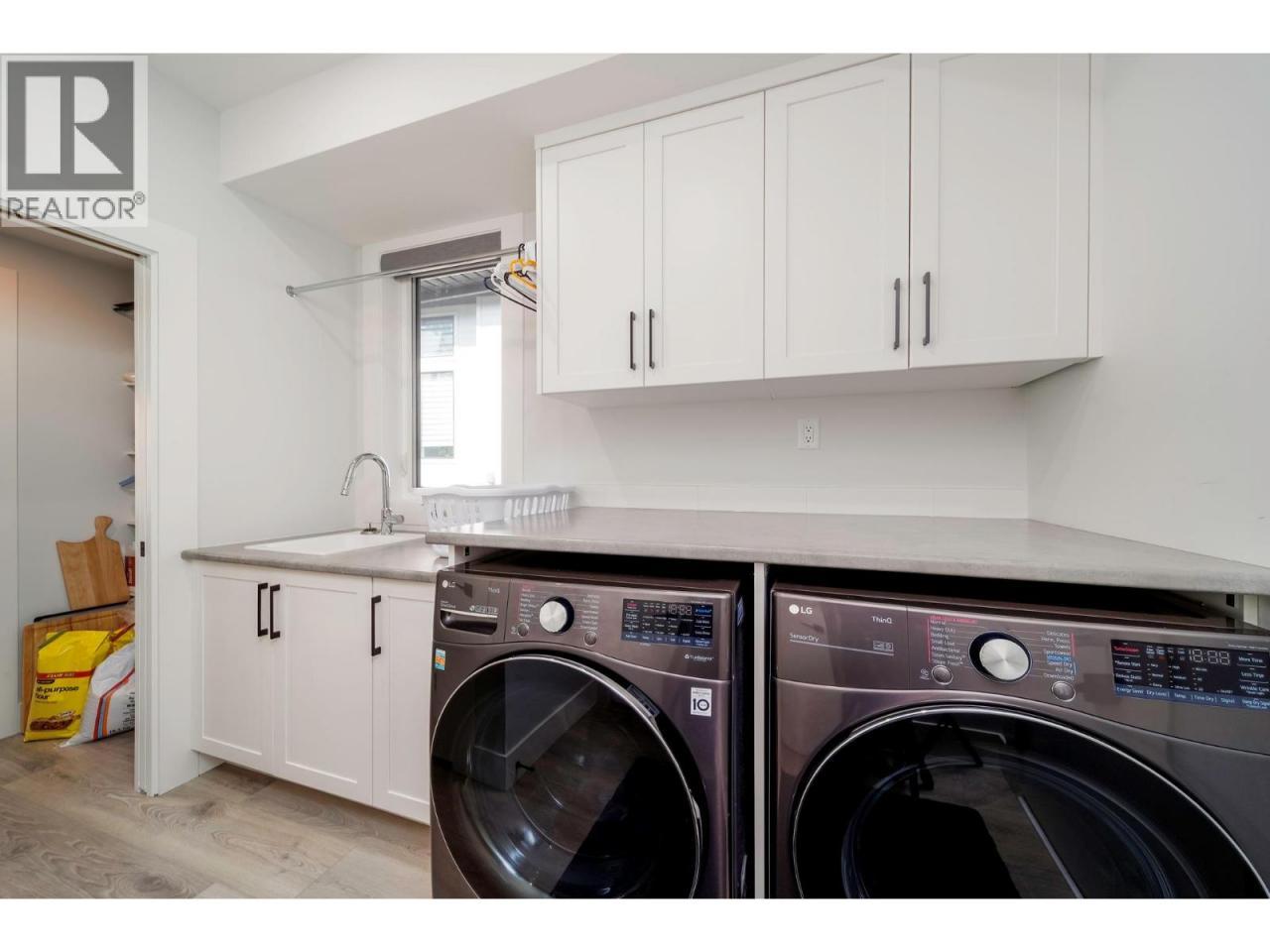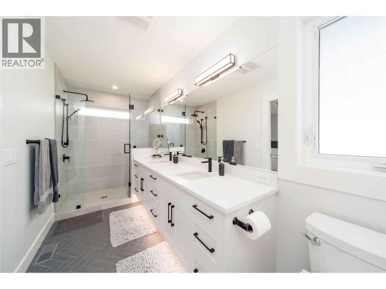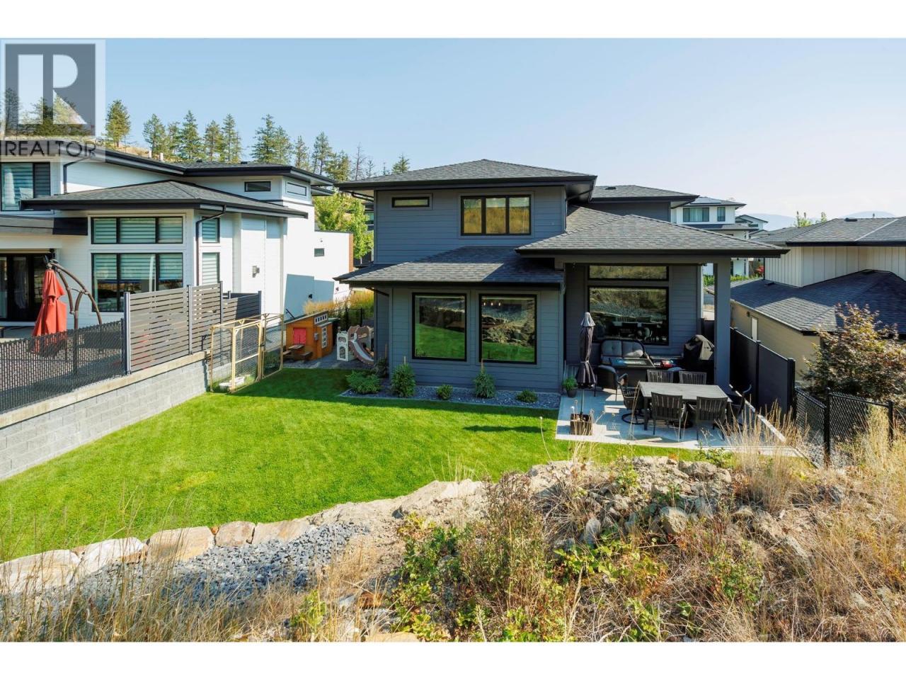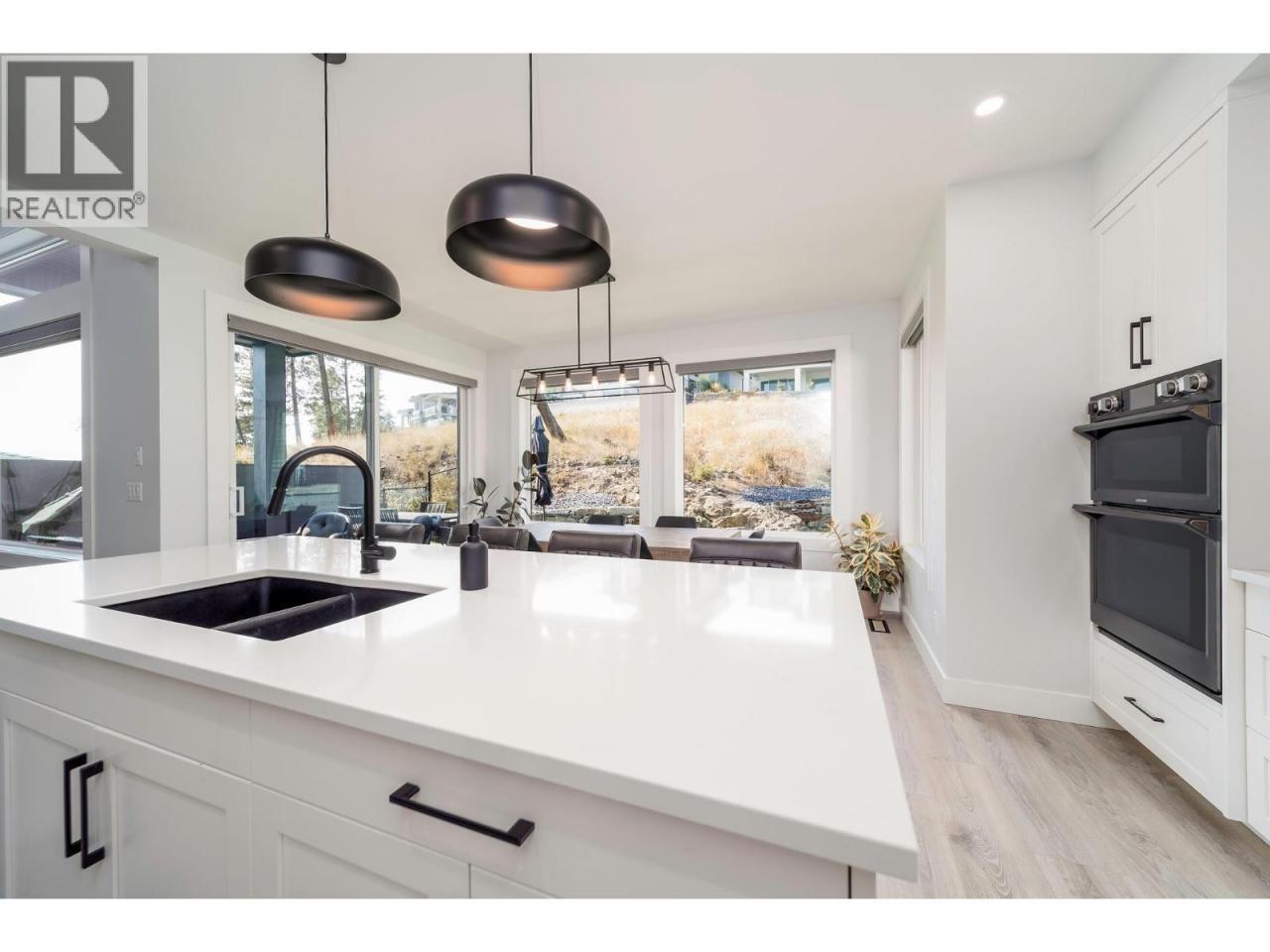 Beautiful 2-storey partial walkout in Wilden with a legal 1-bed/1-bath suite. Over 3,100 sq.ft. of living space with 6 bedrooms and 4 bathrooms: one on the main, three upstairs, a fifth down, plus the suite. The main floor offers 9' ceilings, laminate flooring, a spacious laundry room with storage, and a chef’s kitchen with gas range, black stainless appliances, built-in wall oven and microwave, quartz countertops, and a walk-through pantry connecting the kitchen to the laundry room. Just off the kitchen is a bar area with wine cooler, while the living room centers on a gas fireplace with floor-to-ceiling tile surround. Upstairs, the primary bedroom has a large walk-in closet and ensuite with tiled walk-in shower, double vanity, and tiled floors. Two additional bedrooms share a full bath with tiled tub/shower, plus a linen closet between them. The lower level adds a fifth bedroom and mechanical room alongside the bright suite with vinyl flooring, dishwasher, microwave, fridge (no stove), 4-pc bath with quartz counter, pot lights, and large window. Outdoor highlights: extended partially covered patio with gas BBQ hookup, hot tub rough-in and partially fenced yard. Oversized partial-tandem double garage with EV charger, storage & side yard access. From your doorstep, enjoy hiking and biking trails, Knox Mountain East Park, and Blair Pond Park with tennis courts, playground, and winter skating. Just 12 minutes to downtown Kelowna. (id:6769)