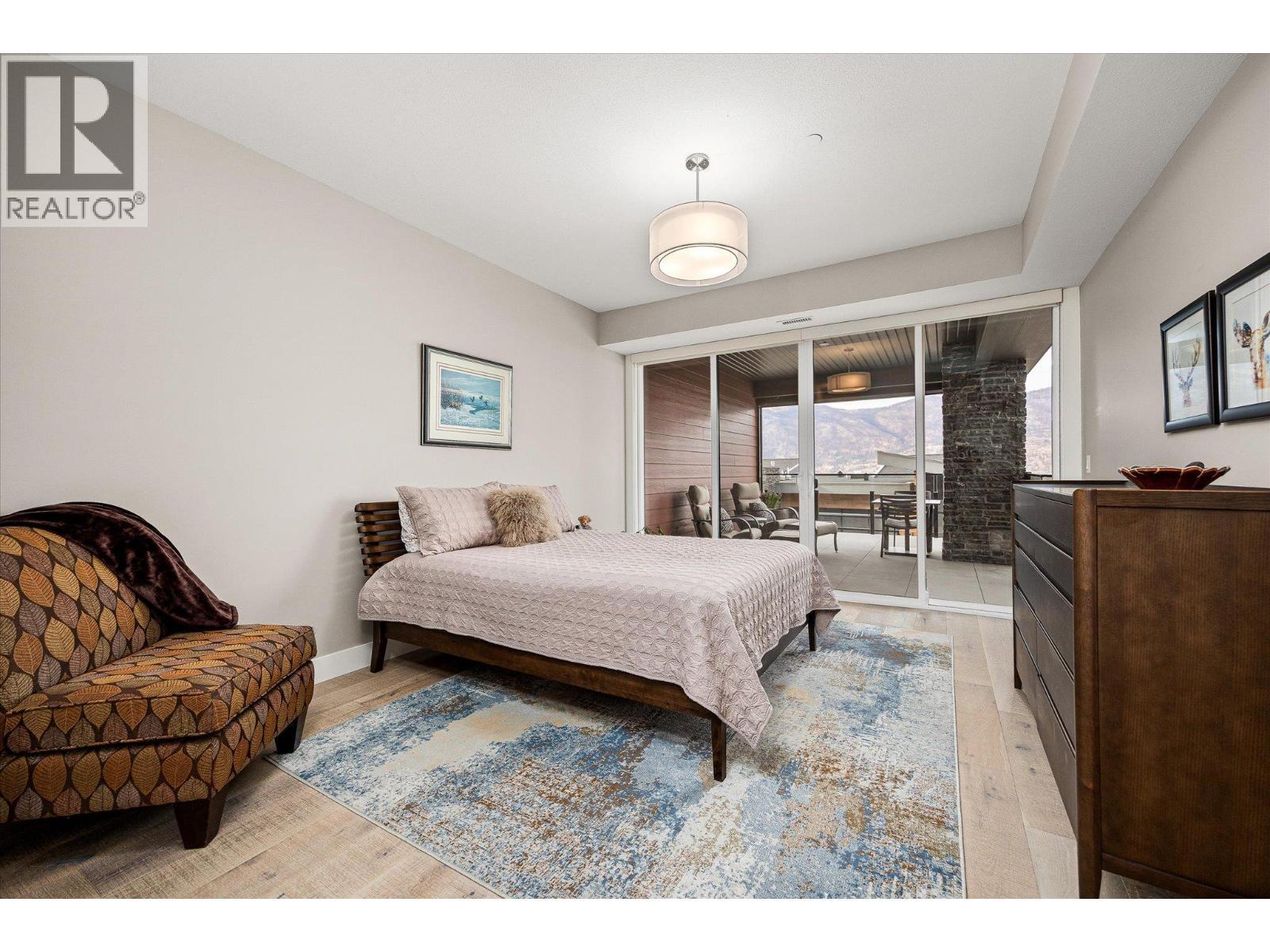 Welcome to Granite at McKinley Beach, a lakeside community built by Acorn Homes. This beautifully appointed 2-bedroom, 2-bath condo offers thoughtful design with bedrooms on opposite sides for privacy and comfort. Enjoy a bright, open-concept layout with engineered hardwood floors, quartz countertops, soft-close cabinetry, and a gas stove. Both bathrooms feature in-floor heating, and the home includes central air and hot water on demand. Step onto your spacious, continuous deck, complete with an estimated $20K retractable awning, gas hook-up, and wiring for a hot tub. This balcony is perfect for summer evenings overlooking the Okanagan Lake. Additional highlights include a large storage room, a heated utility room on the deck, and an underground parking stall. As part of McKinley Beach, residents enjoy lake access, hiking and biking trails, a private marina, gym, community garden, pickleball, basketball, and the community centre, all for a membership fee. Only 20 minutes to downtown Kelowna and 11 minutes to UBCO and the airport, this is lakeside living with everyday convenience. (id:6769)