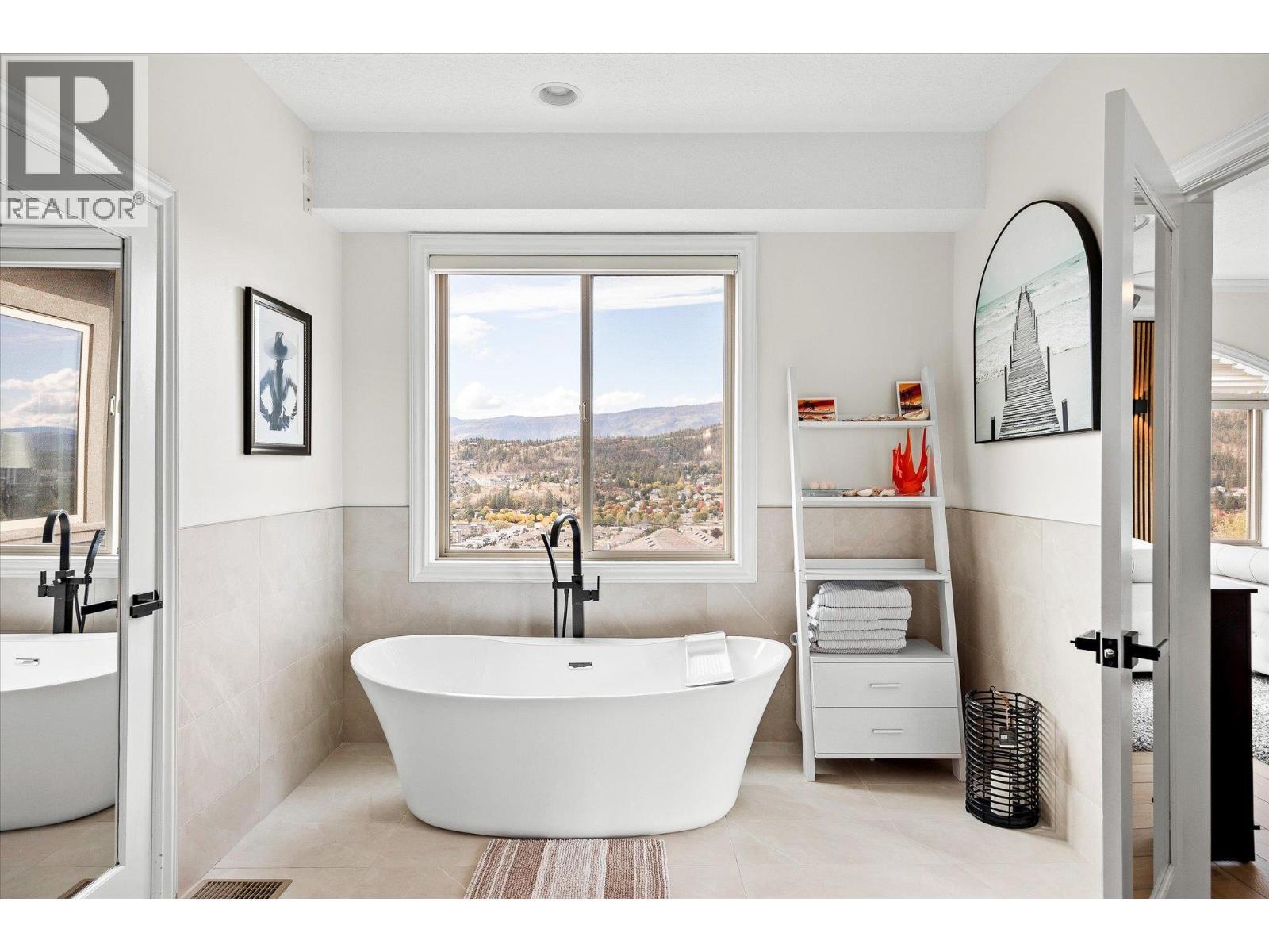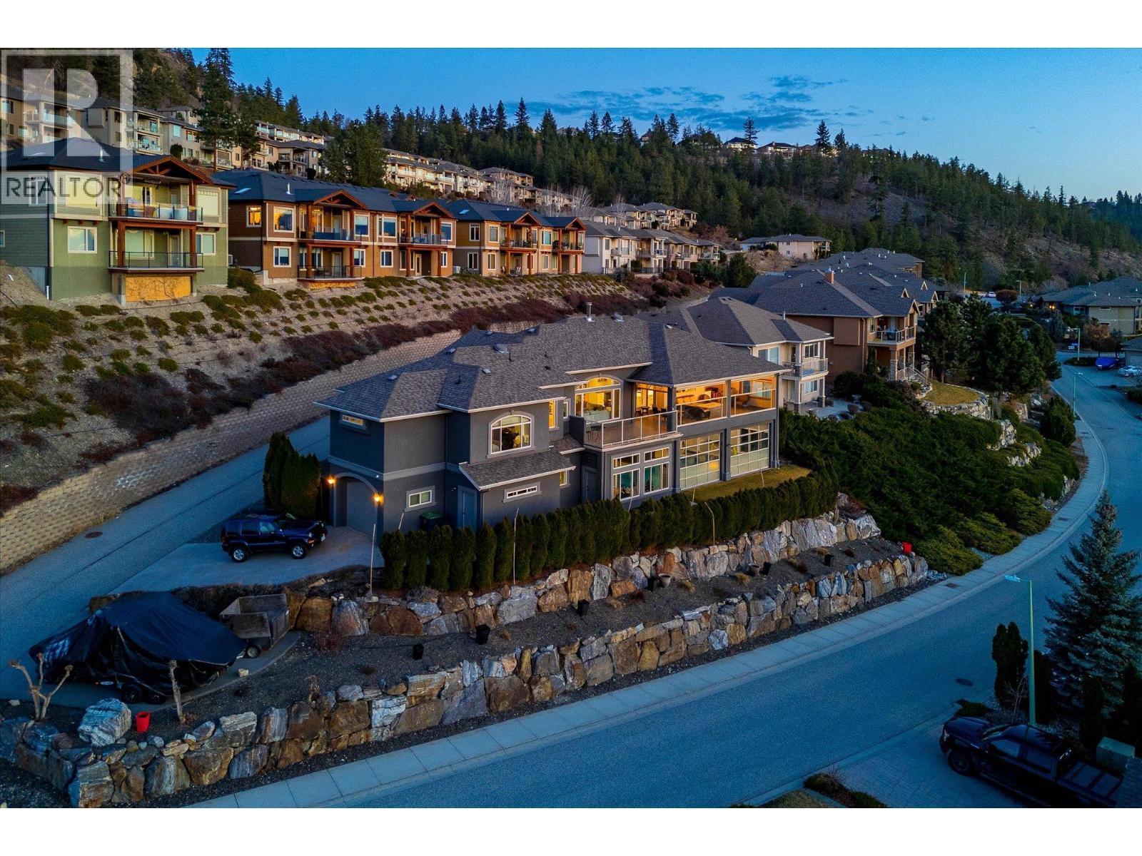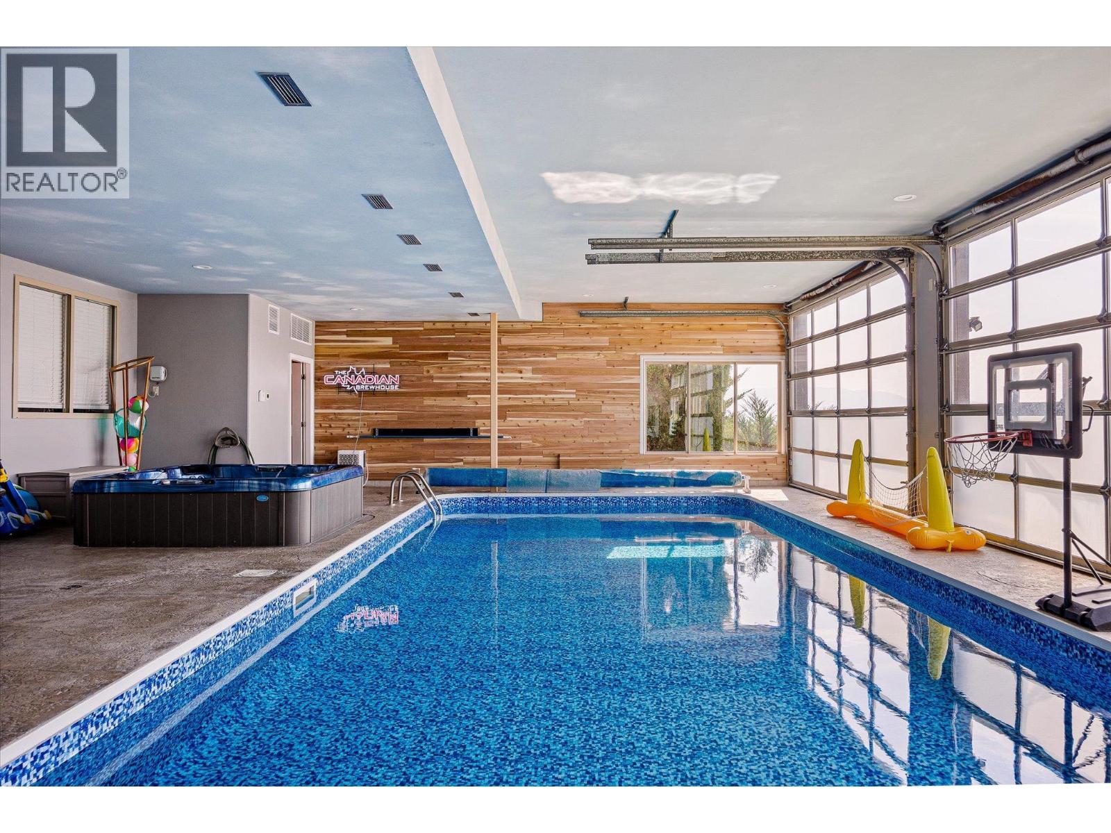 Elevate your lifestyle with this executive walkout rancher showcasing some of the best views in Kelowna. Perched in the sought-after Dilworth Mountain community of Denali Court, this residence offers over 5,200 sq. ft. of thoughtfully designed living space blending elegance with comfort. Inside, 12-foot ceilings, gleaming floors, and expansive windows frame the city skyline and shimmering lake. The gourmet kitchen features custom cabinetry, quartz countertops, perfect for entertaining and seamlessly connected to both indoor and outdoor living areas. A highlight is the unique indoor/outdoor pool. Low-maintenance and usable year-round, it provides endless enjoyment. Oversized bay doors open for sunny, open-air lounging. A steam shower completes this private wellness oasis—ideal for relaxation or fitness. The garage design is rare: an oversized two-car garage on the main level plus a single garage below, attached to a private office with separate entrance. Perfect for remote work, a studio, or quiet retreat. Situated on a 0.26-acre corner lot, the home offers more space and privacy than most nearby. Parking for up to nine vehicles, including RV space, adds convenience. Downtown Kelowna is only five minutes away for shopping, dining, and entertainment. Whether enjoying the panoramic views, retreating to the luxurious pool and steam room, this residence delivers the ultimate combination of luxury, nature, and convenience in one of the city’s most coveted locations. (id:6769)