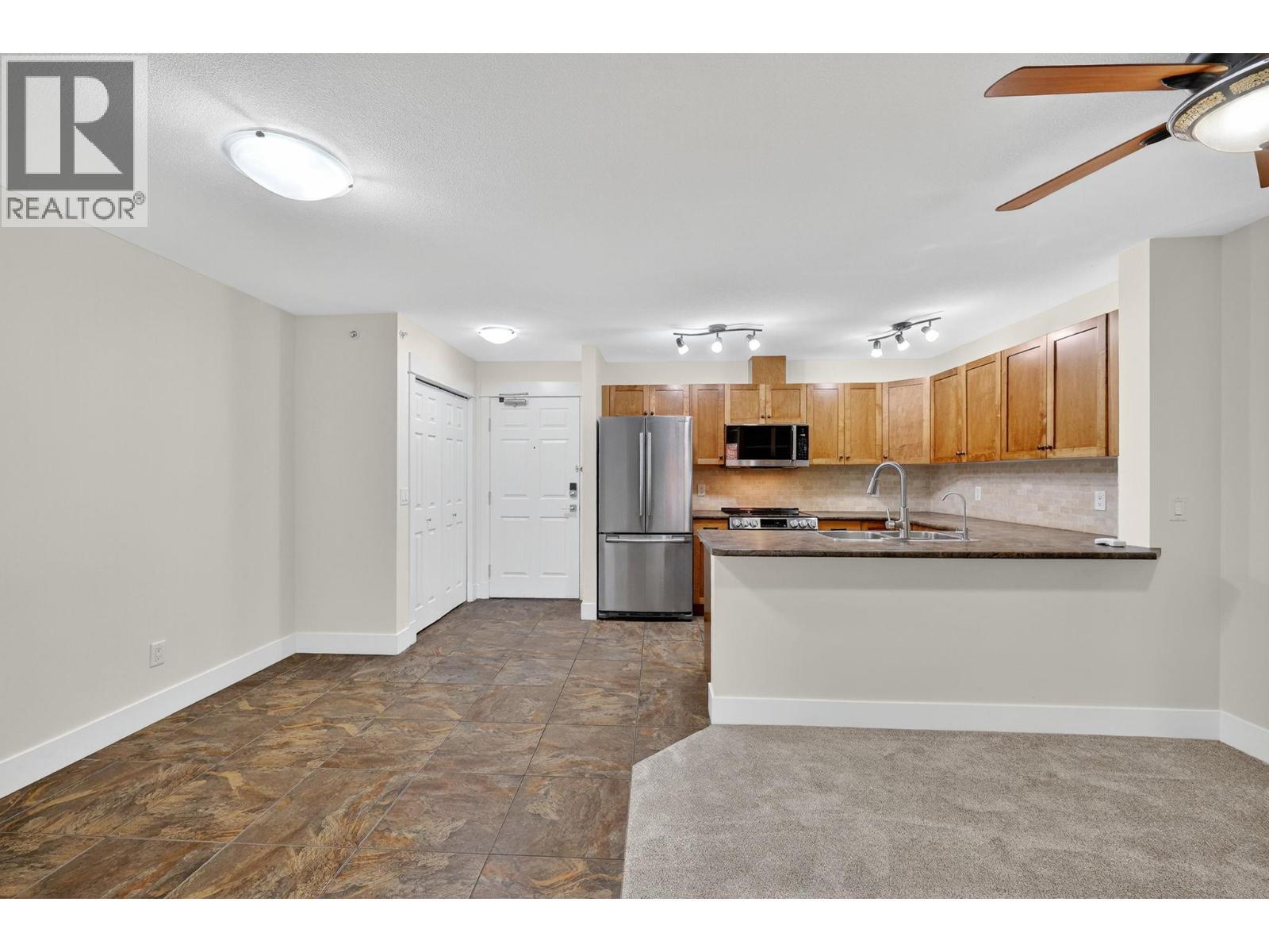 Welcome to Ziprick Place, where comfort and convenience come together in one of Kelowna’s most central and desirable locations. This bright and spacious top-floor corner condo offers over 1,200 square feet of thoughtfully designed living space with two bedrooms and two bathrooms. Positioned on the quiet side of the complex and facing east, it enjoys abundant natural morning light and peaceful surroundings. The interior has just been professionally painted throughout and features brand-new carpet, a new stainless steel range and microwave, giving the home a fresh, move-in-ready appeal. The open kitchen, dining, and living areas flow seamlessly onto a large 160 square foot sundeck, perfect for your morning coffee or relaxing outdoors. The primary bedroom is generously sized with a walk-through closet and private ensuite, while a full laundry room provides additional storage space. Two secure side-by-side parking stalls in the covered parkade and a separate storage locker add excellent practicality. One dog or cat is welcome with no size restriction, a rare find in Kelowna. Ideally located just minutes from Orchard Park Mall, Mission Creek Greenway, Costco, and right across the street from the new Canadian Tire, with restaurants, coffee shops, and public transit nearby. Vacant and ready for quick possession. If you have any questions or would like to book a private tour, reach out today! (id:6769)