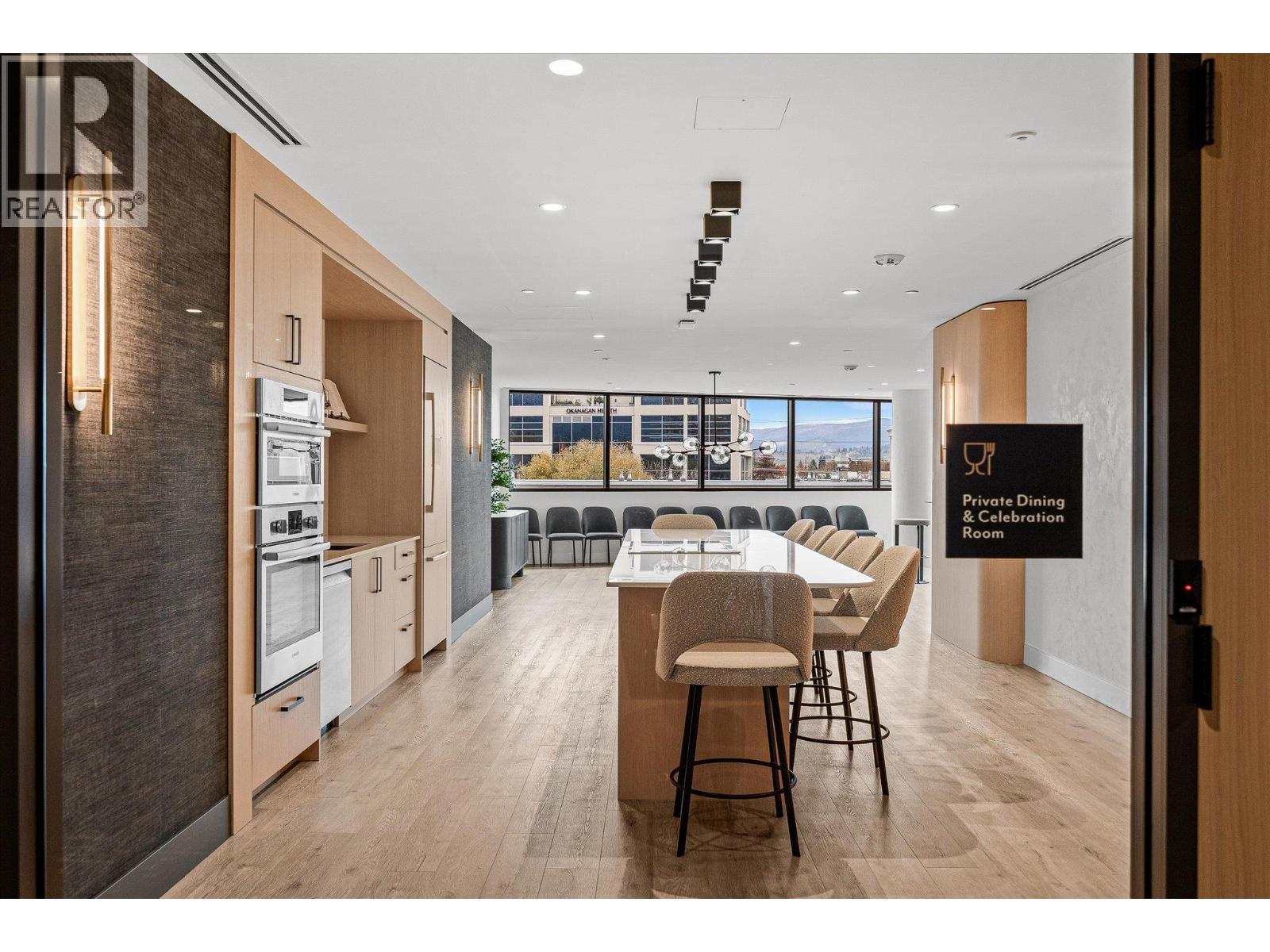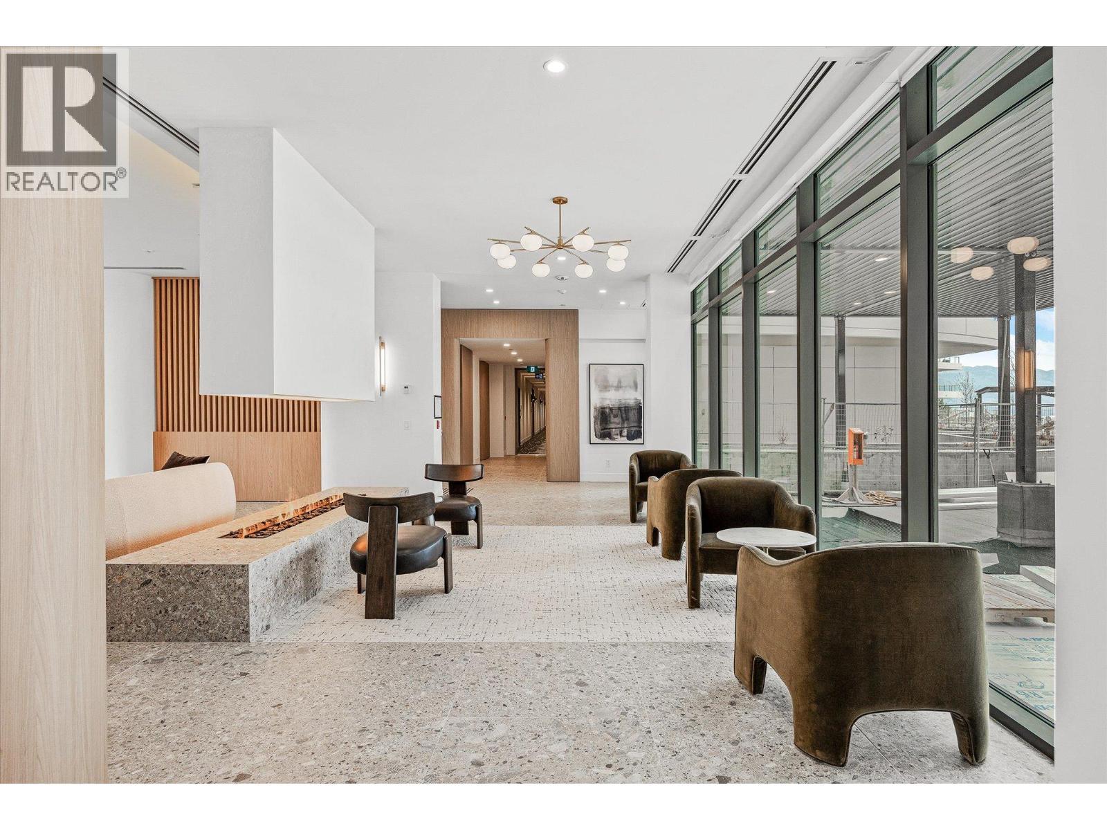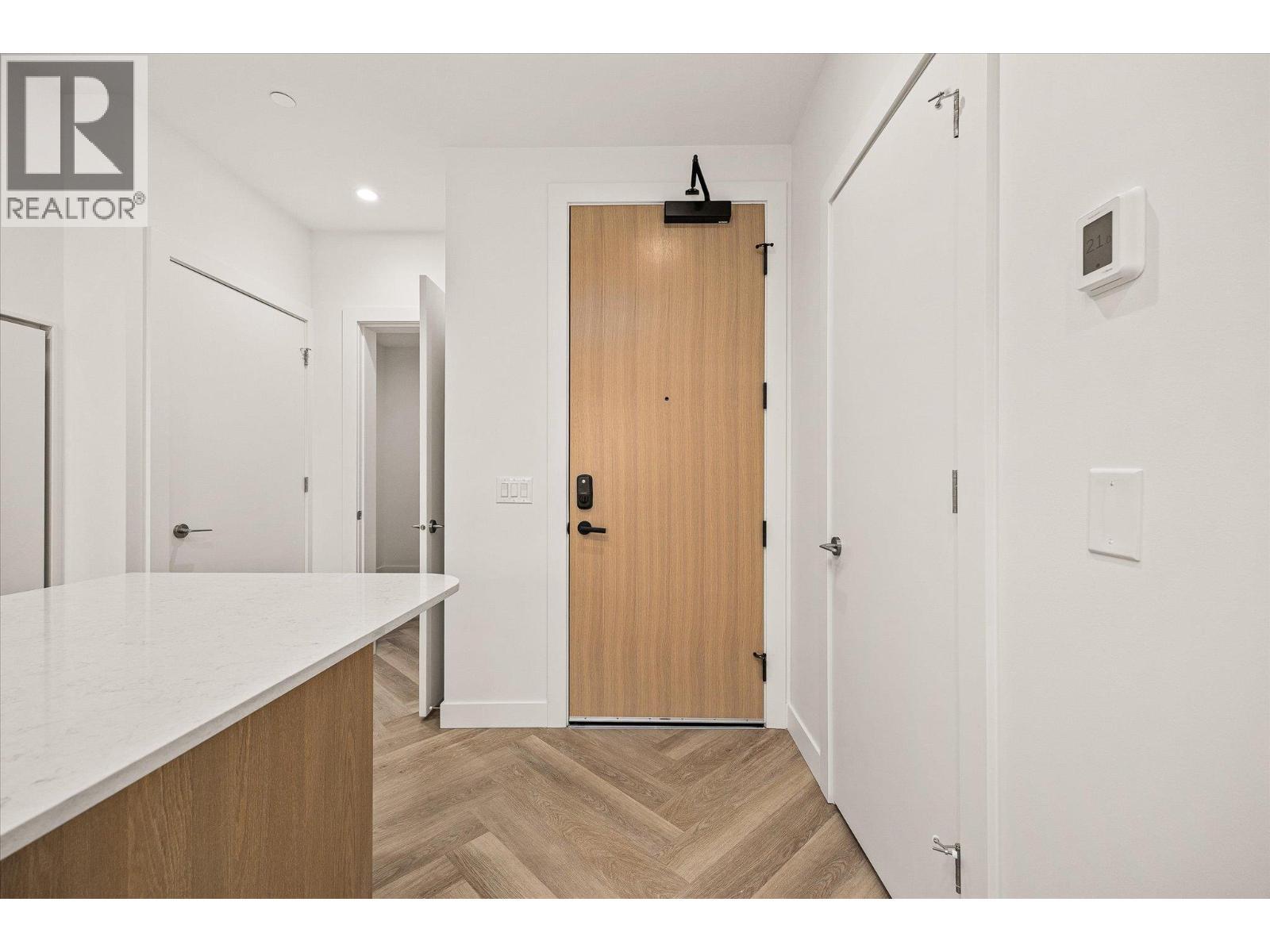 Modern Lakeside Amenity-Rich Living at Movala; Kelowna’s most anticipated new address, positioned between sandy beaches, vibrant eateries & boutique shopping! This gorgeous lakeview 1-bdrm+den condo combines modern design with functionality, creating an effortless urban retreat just steps to Pandosy Village. Beautifully crafted, featuring modern cabinetry, luxury vinyl plank flooring, quartz surfaces & 9ft ceilings. The chef-inspired kitchen offers premium SS appl. complemented by a fully integrated refrigerator. The spacious island offers plenty of prep space & casual seating for 4 - perfect for entertaining! The bright living area flows seamlessly to the covered south-facing patio w/natural gas hookup, where you can take in views of Okanagan Lake, Gyro Beach Park & soak up the Kelowna sunshine! The primary bdrm features a walk-in closet w/custom built-ins & large south-facing window, while the sleek 4pc bath boasts an oversized walk-in shower, dual sinks & modern tile finishes. A versatile den completes this cozy home & offers flexibility for guests or home office. Movala offers resort-inspired amenities - A lakeview pool & hot tub and cabanas surrounded by lush landscaped grounds with fire tables, bocce lawns & alfresco BBQ areas. Inside, enjoy a gym & yoga studio, co-working spaces, entertainment lounge, great room with casual seating, a library, private dining room + a guest suite & pet wash! Truly an unmatched lifestyle in an unmatched location! & GST has been paid! (id:6769)