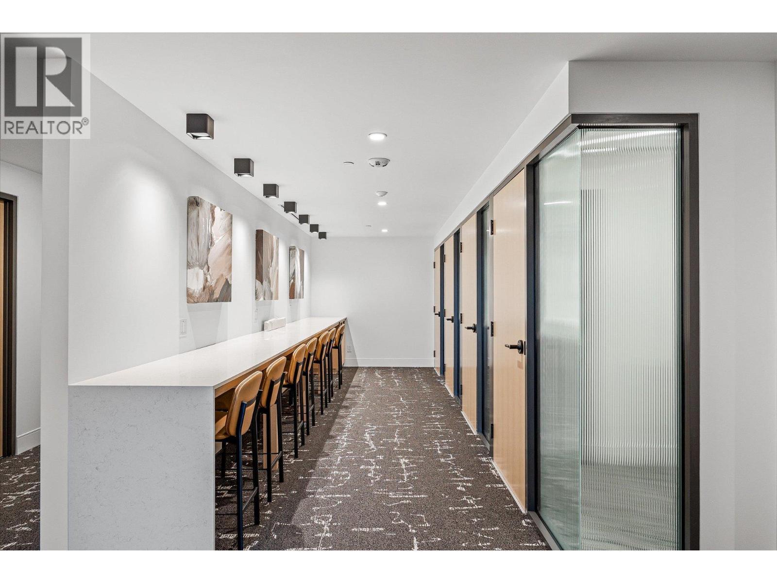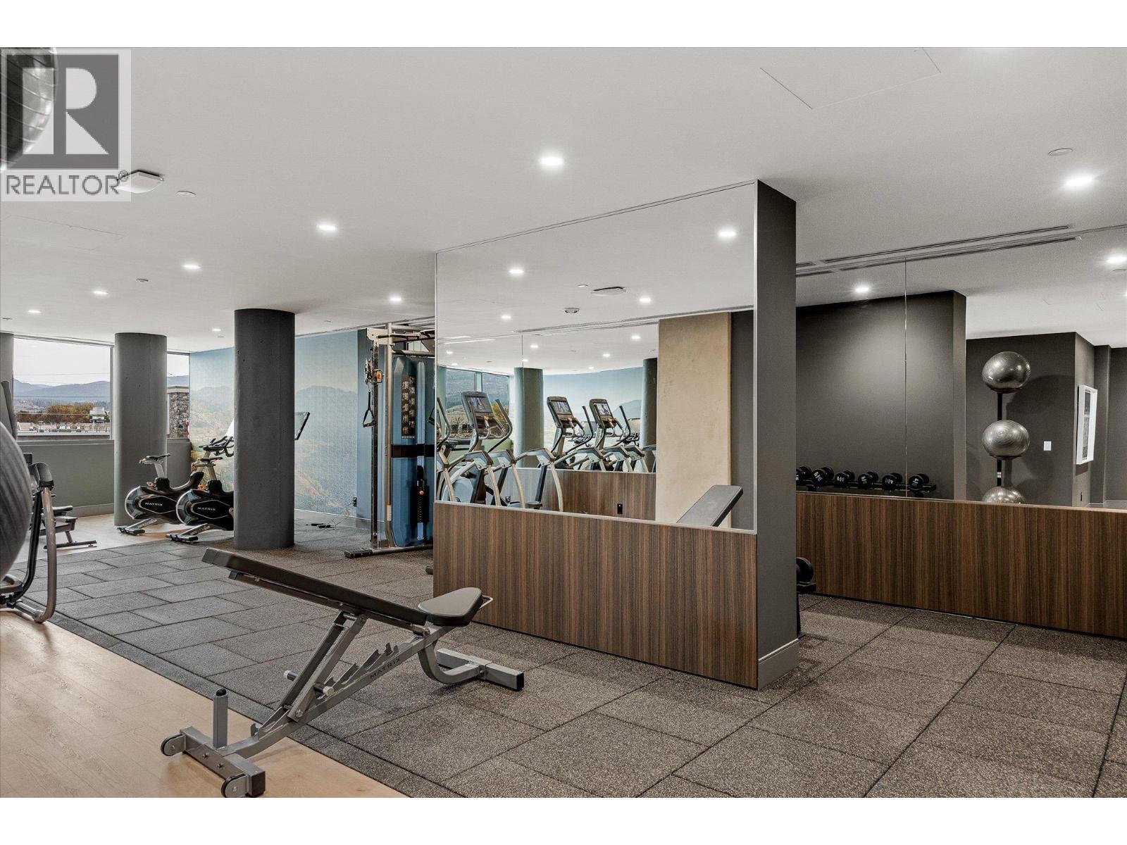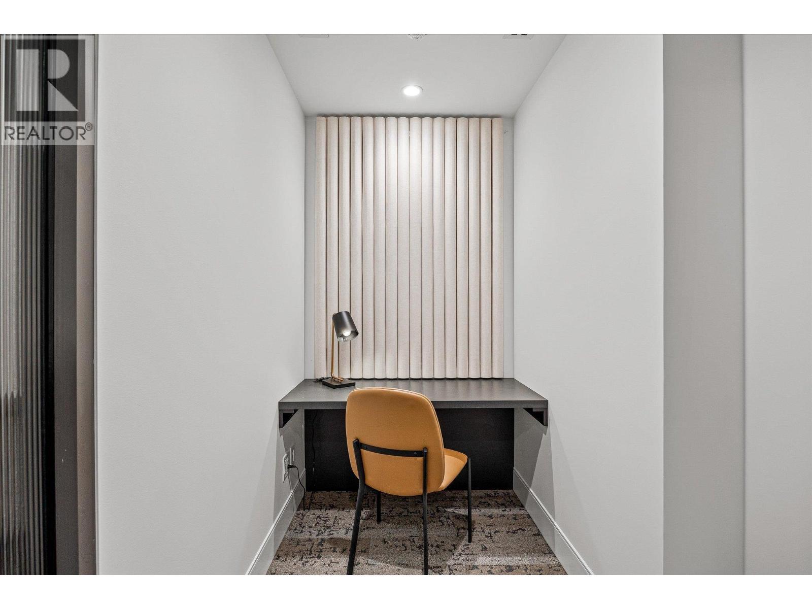 Modern Lakeside Amenity-Rich Living at Movala; Kelowna’s most anticipated new address, positioned between sandy beaches, vibrant eateries & boutique shopping! This gorgeous lakeview 1-bdrm+den condo combines modern design with functionality, creating an effortless urban retreat just steps to Pandosy Village. Beautifully crafted, featuring modern cabinetry, luxury vinyl plank flooring, quartz surfaces & 9ft ceilings. The chef-inspired kitchen offers premium SS appl. complemented by a fully integrated refrigerator. The spacious island offers plenty of prep space & casual seating for 4 - perfect for entertaining! The bright living area flows seamlessly to the covered south-facing patio w/natural gas hookup, where you can take in views of Okanagan Lake, Gyro Beach Park & soak up the Kelowna sunshine! The primary bdrm features a walk-in closet w/custom built-ins & large south-facing window, while the sleek 4pc bath boasts an oversized walk-in shower, dual sinks & modern tile finishes. A versatile den completes this cozy home & offers flexibility for guests or home office. Movala offers resort-inspired amenities - A lakeview pool & hot tub and cabanas surrounded by lush landscaped grounds with fire tables, bocce lawns & alfresco BBQ areas. Inside, enjoy a gym & yoga studio, co-working spaces, entertainment lounge, great room with casual seating, a library, private dining room + a guest suite & pet wash! Truly an unmatched lifestyle in an unmatched location! & GST has been paid! (id:6769)