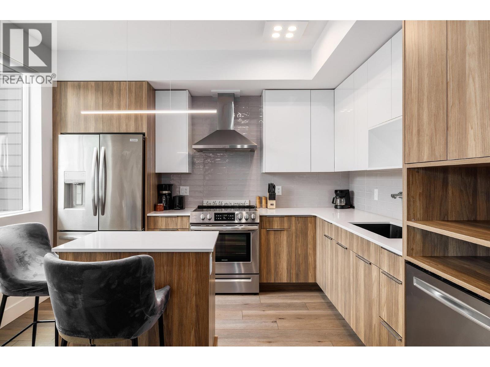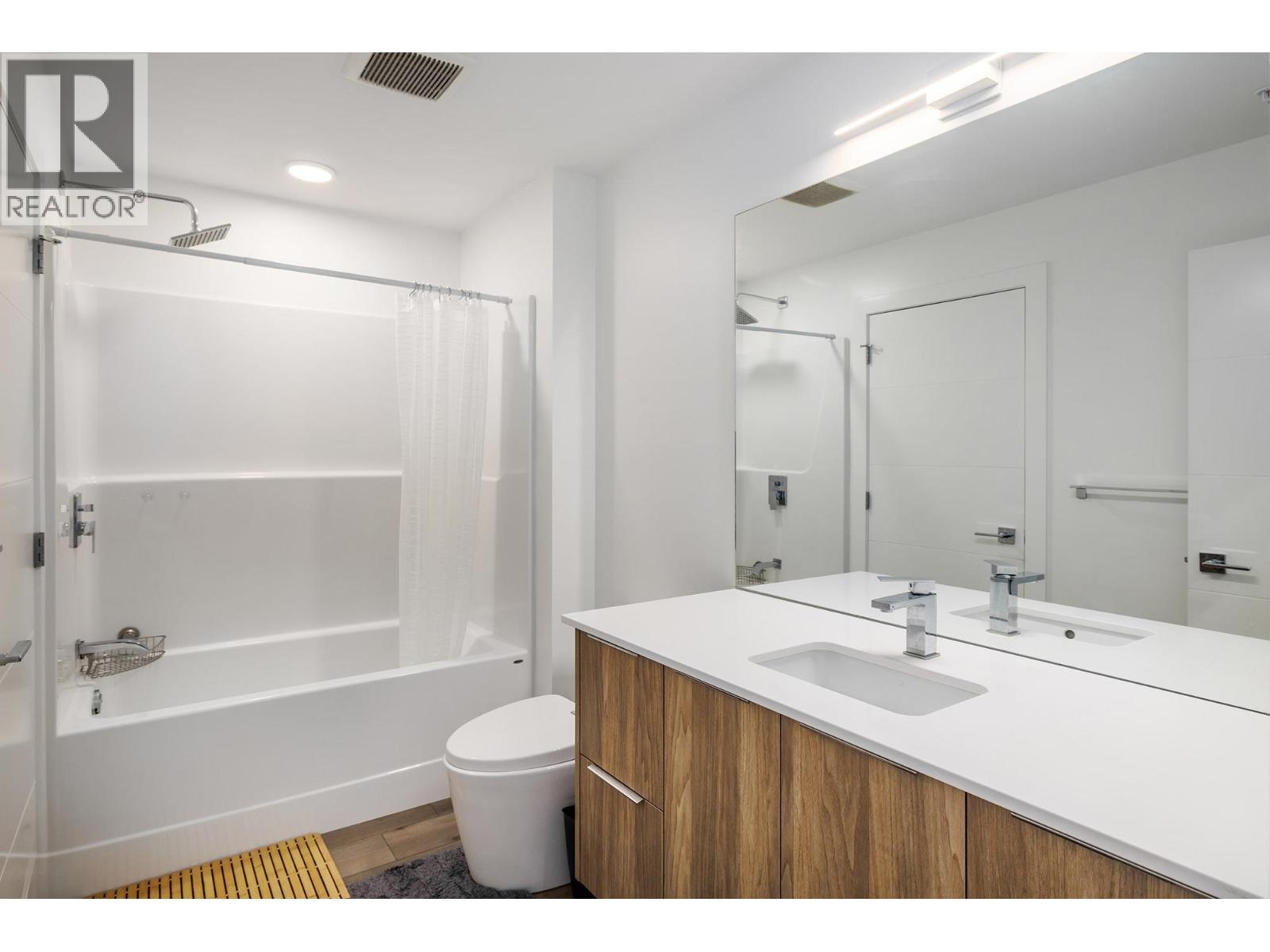 Welcome to Green Square in Kelowna’s Lower Mission—an ideal home base for professionals, downsizers, or investors. This 1-bedroom + den, 1-bath condo offers 750 sq. ft. of bright, functional living space and can be sold fully turnkey for added convenience. The kitchen features quartz countertops, soft-close components in cabinetry, and quality Frigidaire appliances, including an electric range with gas hookup available. An eat-in island with seating for two flows into the open living area, where sliding doors open to a spacious covered deck with glass railings, a gas line, and views of the surrounding mountains. The primary bed room includes a walk-in closet and direct access to the 4-piece bath with a floating vanity and tub/shower combination. A separate den provides flexible space for guests or a home office, while in-suite laundry and A/C offer comfort and practicality. Located just steps from Casorso Elementary and walking distance to beaches, restaurants, shops, Pandosy Village, breweries, and wineries. The pet-friendly building also features a rooftop patio with panoramic views—perfect for enjoying the Okanagan lifestyle. Vacant & ready for quick possession! (id:6769)