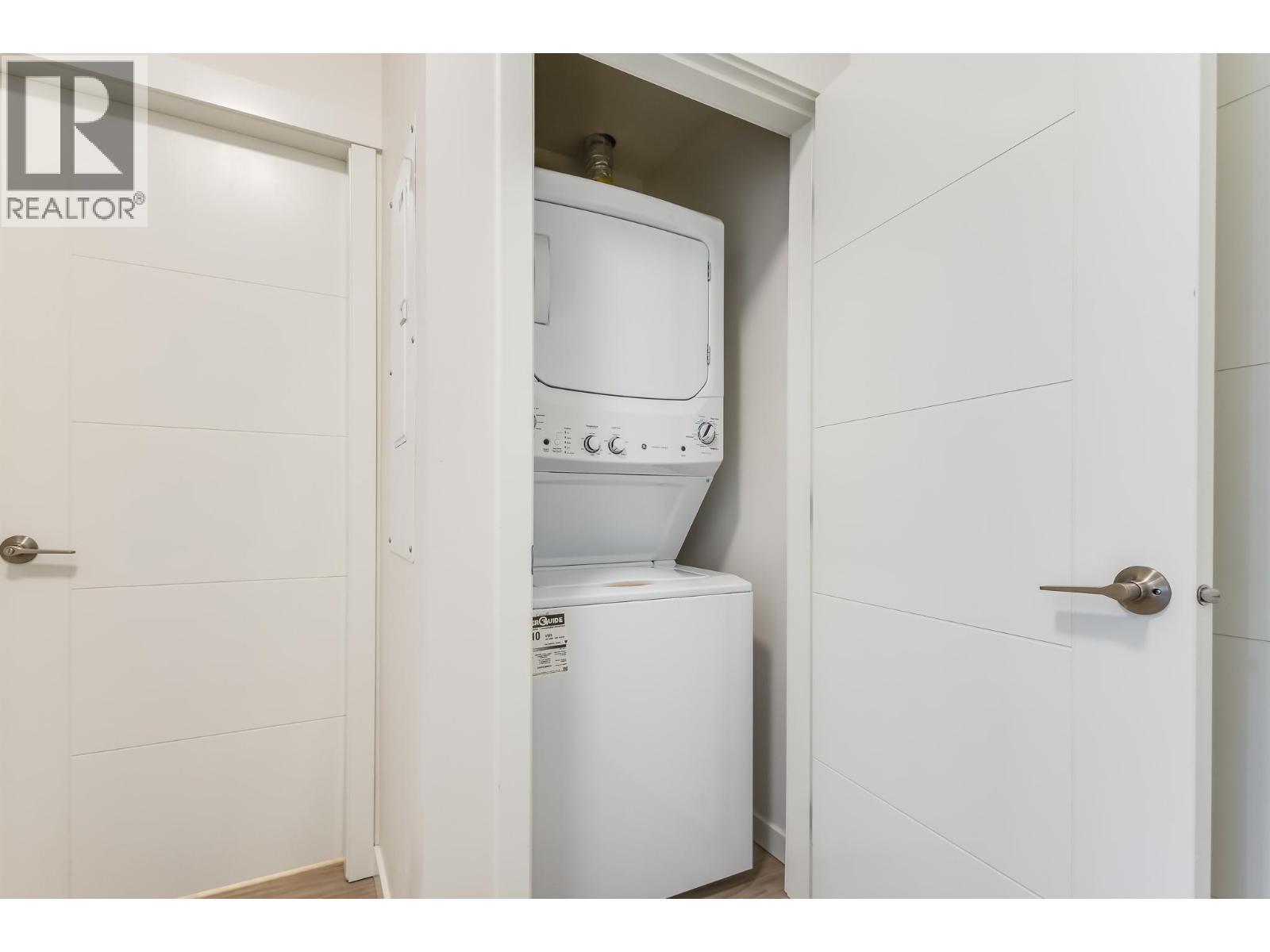 Affordable, nearly new, and yes, it has a separate bedroom. Built within the last three years, this top floor 1 bedroom, 1 bathroom home offers the benefits of modern construction while saving on GST & PTT. At approximately 400 square feet, it lives like a smartly designed micro suite, but with the privacy of a separate bedroom rather than your bed sitting in the middle of your living space. Inside, you will find stainless steel appliances, quality vinyl flooring, and the convenience of in suite laundry. This move in ready condo is ideal for first time buyers looking for an attainable entry point or investors seeking strong rental appeal. The building amenities elevate everyday living with a gym, games room with ping pong, EV charging, dog wash station, and a large storage unit so your seasonal items stay organized and out of sight. Located in central West Kelowna, you are minutes to grocery stores, beaches, wineries, and everyday essentials. Simple, functional, and genuinely affordable living starts here. (id:6769)