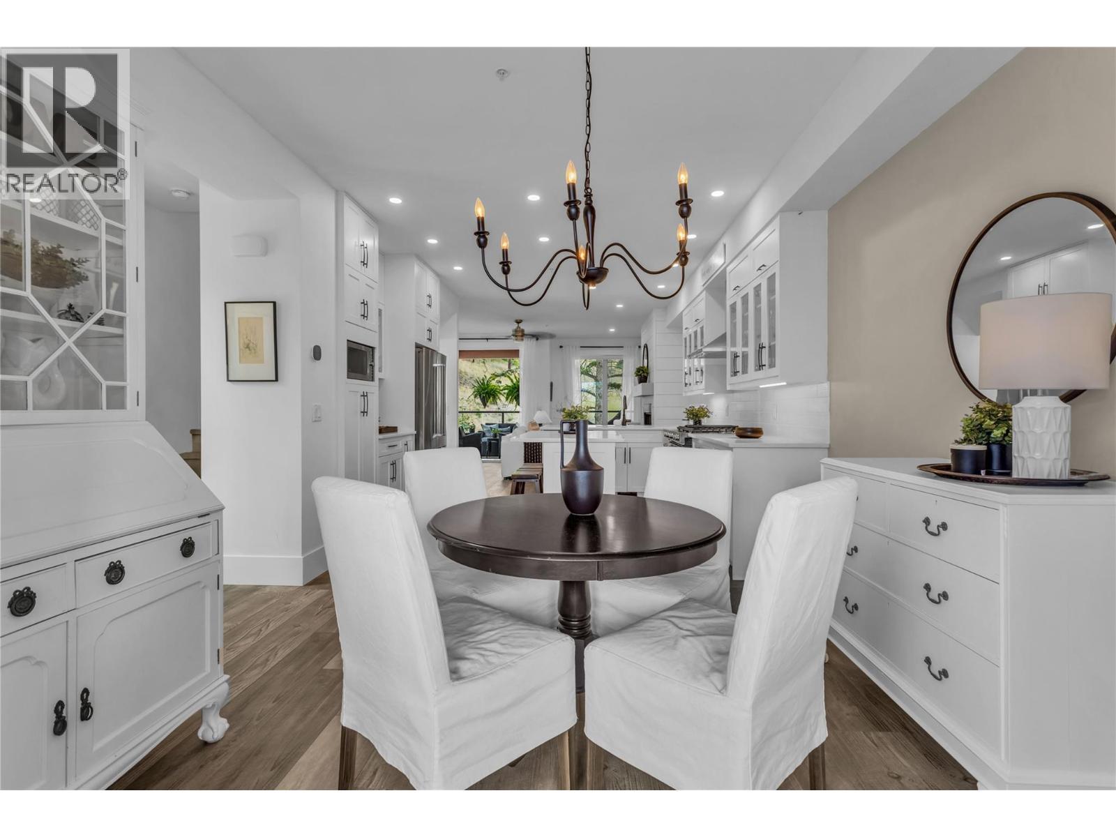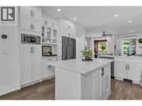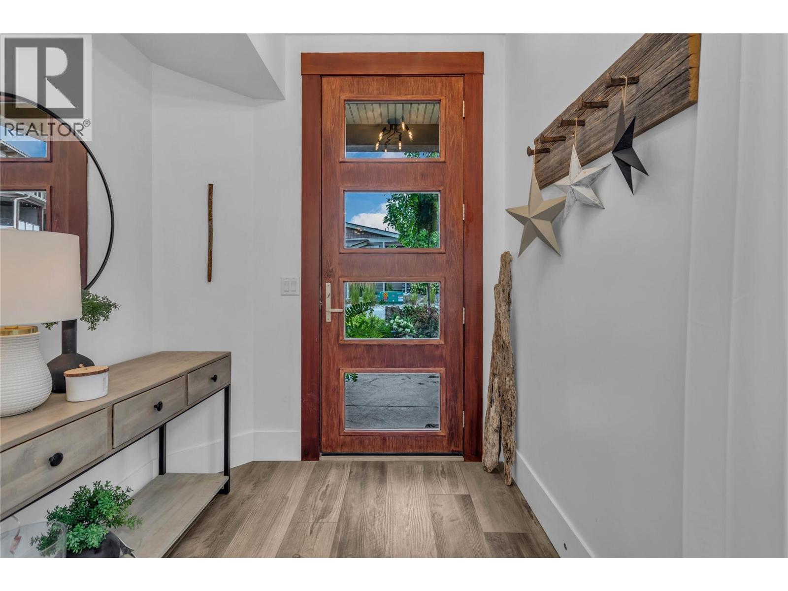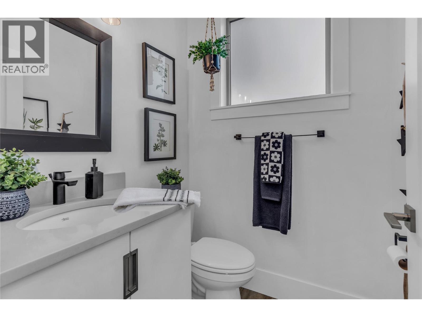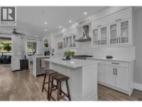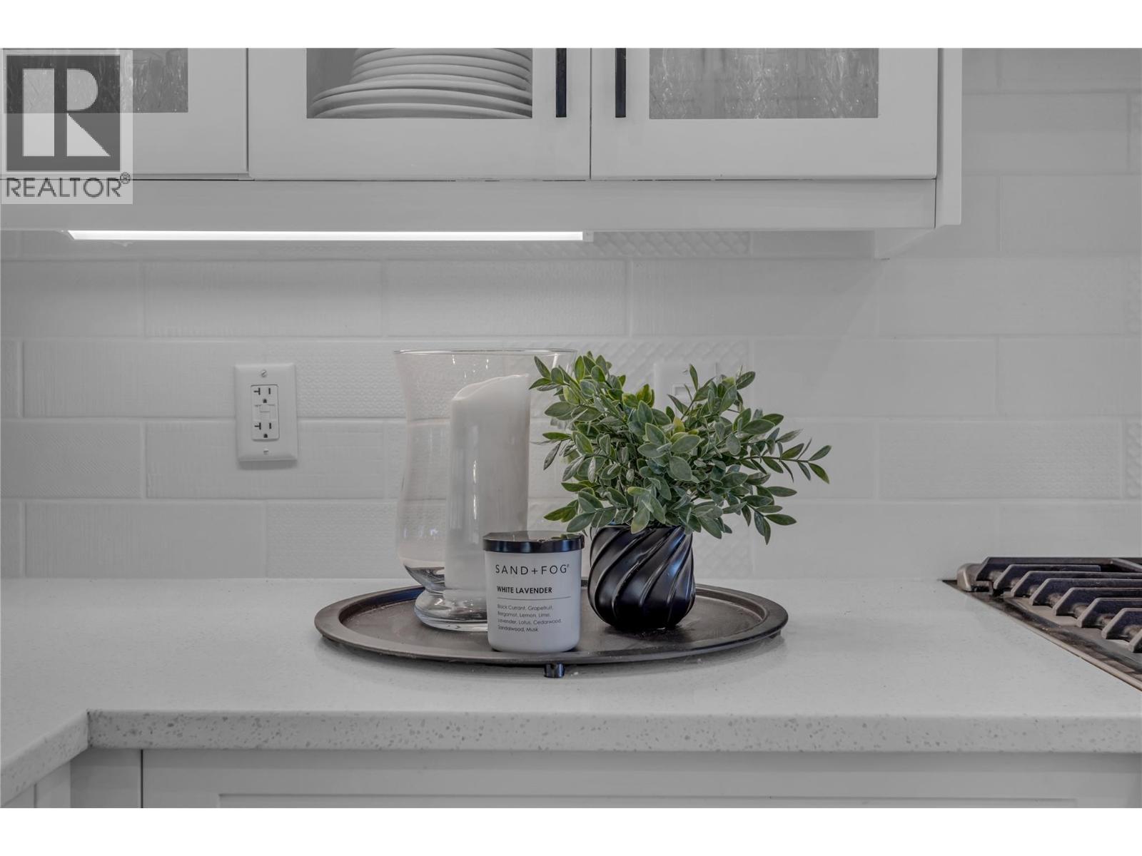 Welcome to The Trails! Backing onto Pincushion Mountain and steps from Hardy Falls and endless scenic trails, this location couples nature with convenience. An executive 9-hole golf course is approved next door, while Beach Avenue’s shops, restaurants, parks, marinas, wineries, and microbreweries are just minutes down the hill. This exceptional end unit presents like a show home. The craftsman exterior with Hardie board siding, rich wood and slate accents, and a stamped concrete entry sets the tone for the quality throughout. Inside, soaring ceilings and expansive windows flood the home with natural light, creating an open, airy atmosphere. The main living level is designed for entertaining, featuring a stunning white kitchen with upgraded cabinetry, quartz countertops, custom backsplash, premium appliances, and refined hardware. The living room is anchored by a cozy natural gas fireplace with a solid wood mantle and elegant shiplap detail. Two inviting covered decks on this level offer private views from both sides of the home. Upstairs offers 3 generous bedrooms and 2 full bathrooms, including a serene primary retreat with vaulted ceilings and transom windows. On the entry level, a large rec room with a 2nd fireplace opens directly to the patio — ideal for guests or seamless indoor-outdoor living. Phantom screens throughout, an oversized tandem garage with abundant storage for all your lifestyle gear, and the peace of mind of a FireSmart community. (id:6769)