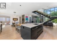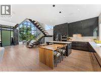 Architectural brilliance meets urban convenience in this 6-bedroom, 7-bath residence, including a 2-bedroom, 2-bath legal suite w/ Air BnB income potential. Just steps from Gyro Beach & Pandosy Village, the home pairs striking design with everyday functionality. Inside, soaring ceilings & floor-to-ceiling windows create an airy space. A floating staircase anchors the open living space, offering a dramatic fireplace feature, wide-plank hardwood, & exposed steel beam detail make bold statements. The chef’s kitchen is outfitted w/ sleek push-touch cabinetry, quartz surfaces, premium JennAir appliances, & a wine display, with seamless flow to the dining & family rooms. The main-level primary retreat offers a wall-sized custom wardrobe & spa-like ensuite w/ heated floors, a soaker tub, & large shower. Upstairs, find 3 additional bedrooms, 2 baths, a glass-railed office nook, & 2 covered decks w/ mountain & peek-a-boo lake views. Designed for entertaining, the backyard offers a private courtyard patio w/ covered outdoor kitchen, speakers, & pool heater rough-in, plus a manicured fenced lawn with room for a pool. The legal suite impresses with its own island kitchen, living area, laundry, & expansive deck. Add'l features include a heated triple garage w/ epoxy floors, ample exterior guest parking, landscape lighting, & secure perimeter fencing. This residence seamlessly blends modern architecture w/ the walkable Okanagan lifestyle in one of the trendiest neighbourhoods. (id:6769)