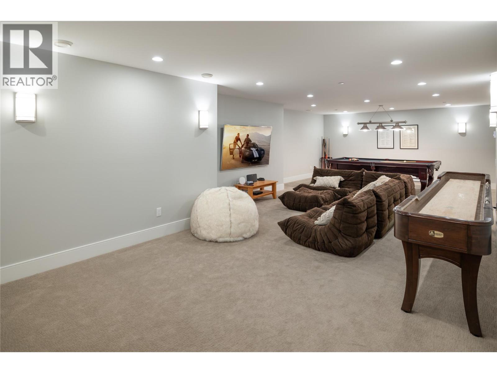 Where privacy meets nature. A treelined driveway at the end of a quiet cul-de-sac opens to a park-like, meticulously landscaped, fully-fenced .67-acre yard adjoining Predator Ridge's trails and green space. Rare for the community, this expansive lot offers sweeping southern views, triple garage plus RV parking with room to breathe. Step inside this captivating custom 2015 Wesbild prairie-style rancher and experience seamless one-level living, where sun-drenched open spaces and cathedral ceilings blur the line between inside and out. The showpiece kitchen features a nine foot island with Sub-Zero, Miele & Wolf appliances, perfect for everyday living and entertaining. A 1520 square foot south-facing covered veranda that is sun-drenched in winter and naturally shaded in summer, creates the perfect outdoor lounge, dining, and entertaining space year-round. Two primary suites with ensuites and walk-in closets, two additional bedrooms, soundproofed media room with 80"" TV and surround sound, custom cabinetry, LUTRON lighting and CAT-5 throughout. Heated epoxy-floored triple garage with workshop plus RV/boat parking. An 720 sf lower-level games and recreation room completes this exceptional home. A rare rancher where lot, location and lifestyle align. PREDATOR RIDGE IS EXEMPT FROM BC SPECULATION AND VACANCY TAX. (id:6769)