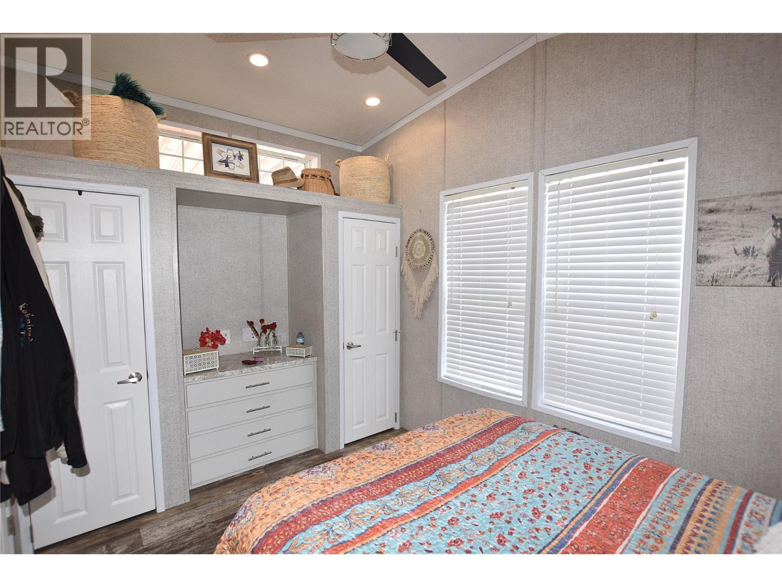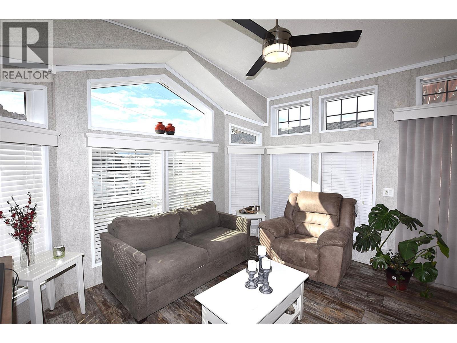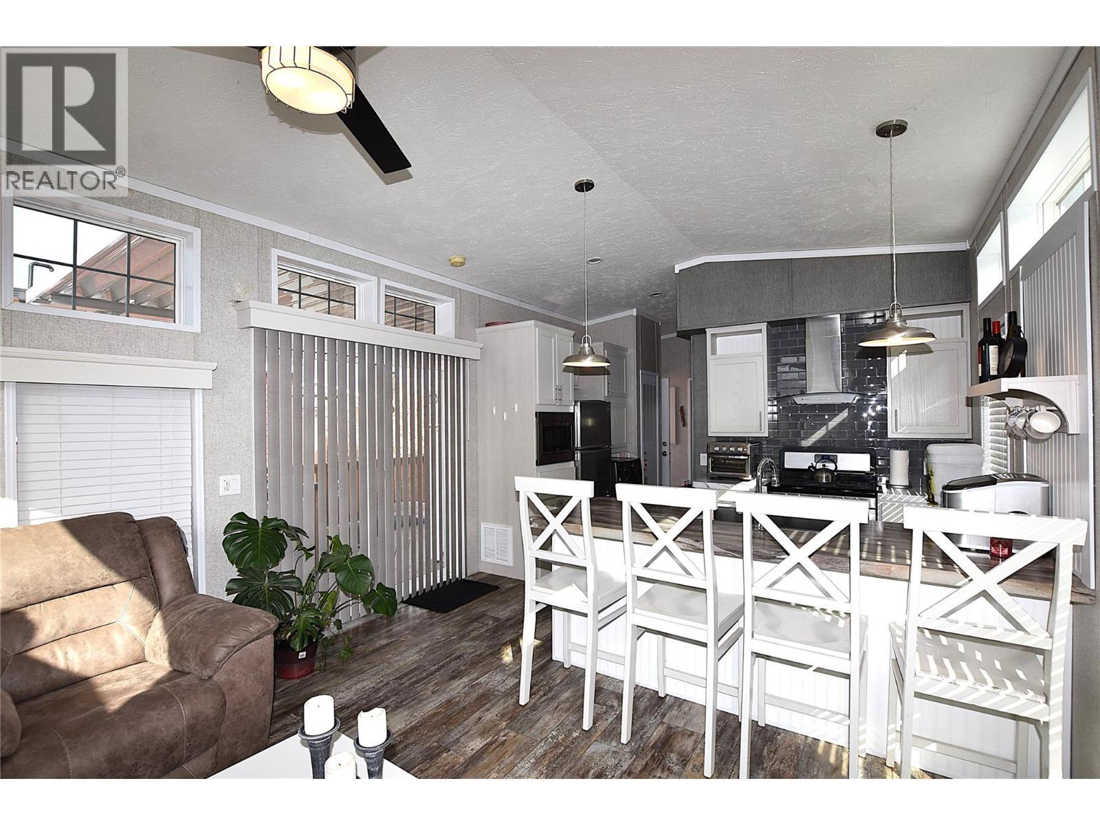 Welcome to #5–65 Antoine Road, a beautifully maintained 8-year-old Park Model home in Willow Lake Side Homes MHP—just 10 minutes from Vernon and less than 5 minutes to the golf course. This bright and inviting home features an open-concept main living area with vaulted ceilings and an abundance of windows, filling the space with natural light. The kitchen is thoughtfully designed with a large island, farmhouse-style sink, and stainless steel appliances—including a dishwasher—making it both stylish and functional. The living room offers a charming bay window and a cozy electric fireplace, perfect for adding warmth and ambiance on cooler evenings. The bedroom is well-appointed with two closets featuring built-in drawers, plus additional built-in storage above the bed for maximum organization. Step outside to enjoy the spacious 9' x 22' covered deck—ideal for relaxing or entertaining throughout the spring, summer, and fall. The fully fenced yard provides privacy, ample gardening space, and includes a 10' x 8' shed for extra storage. Additional features include: Soft water system Carport plus two additional parking spots Access to Okanagan Lake The pad rental is an affordable $400/month and includes water, sewer, garbage, road maintenance, and lake access. An excellent condo alternative for anyone looking to enjoy affordable living in the Okanagan, close to the lake and all amenities. (id:6769)