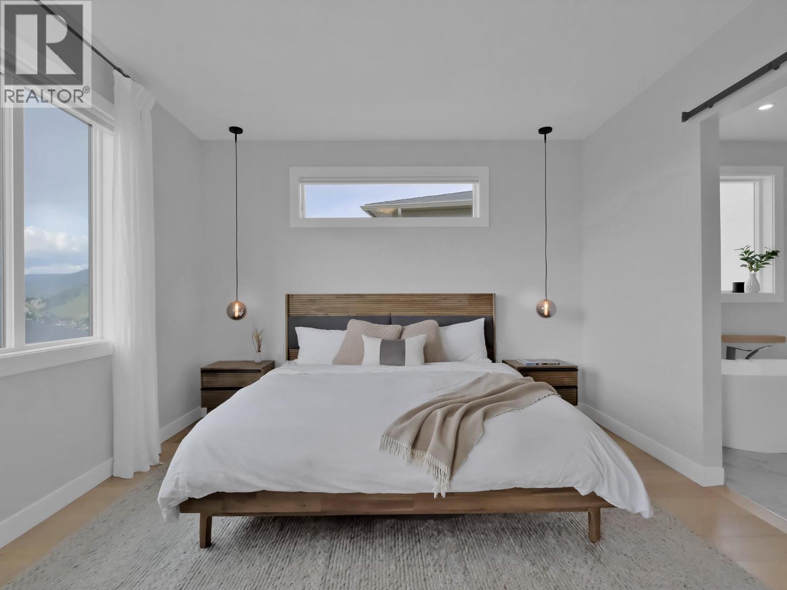 Experience this contemporary custom home in Kelowna, boasting breathtaking panoramic views of the city, Okanagan Lake, and the majestic mountains. A unique feature is the rare extra RV parking, a valuable asset in the neighborhood. Inside, a grand 13-foot foyer welcomes you, leading to the spacious 10-foot ceilinged living and kitchen areas. The custom kitchen is a chef's delight with quartz countertops, built-in appliances, and custom cabinetry throughout the home. Conveniently located near the entrance is an office with custom cabinetry. Upstairs, the master suite offers a spa-like ensuite with heated floors. The basement provides two bedrooms, two full bathrooms, a family room, and a guest bedroom. A separate one-bedroom legal suite adds versatility. The heated two-car garage includes hot and cold water. Outside, the property is fully fenced for privacy. Enjoy a custom Scandinavian sauna, a relaxing outdoor area, an outdoor shower, and a hot tub, all designed to maximize enjoyment of the stunning Kelowna surroundings. This home seamlessly blends luxurious living with exceptional, sought-after amenities. (id:6769)