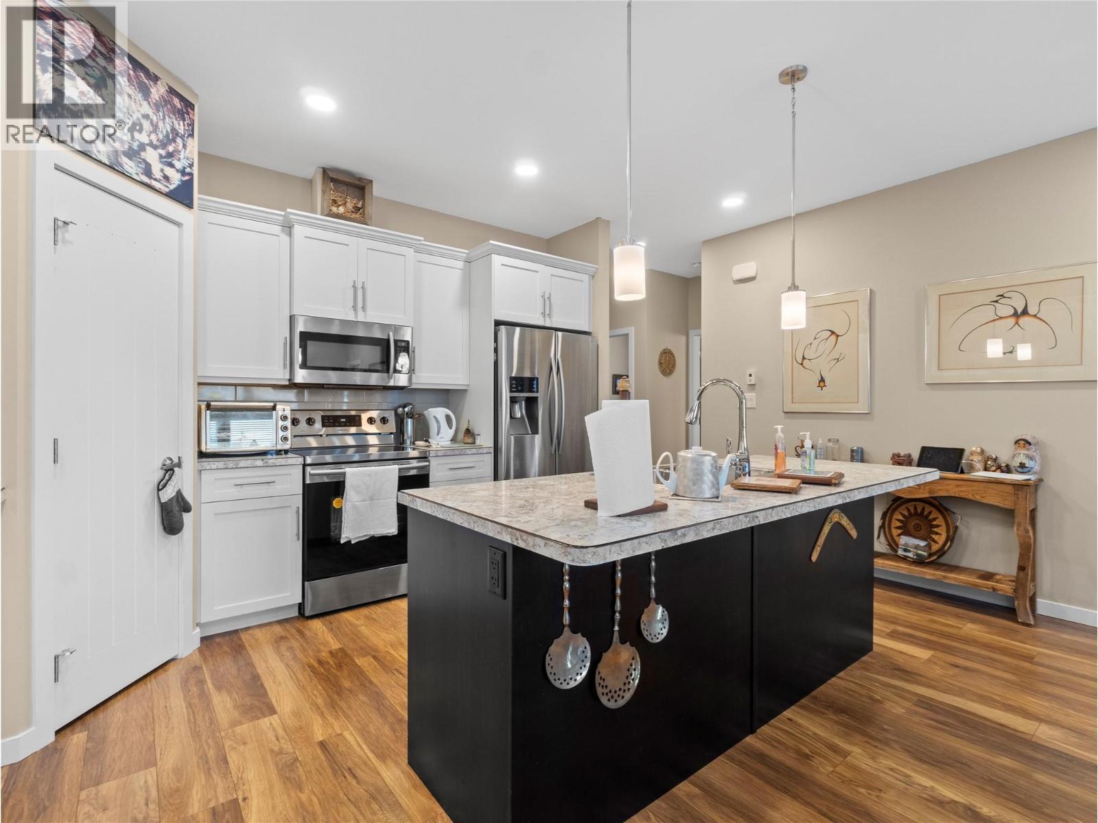 Situated in the desirable Hopkins Meadow development, this 2 bedroom + den, 2 bathroom home offers comfortable living in a 55+ bare land strata community. Built in 2017 and thoughtfully designed, this home has been very well cared for and offers a bright, functional layout. The spacious kitchen features stainless steel appliances, a large island, and pantry storage, flowing seamlessly into the open dining and living areas. The living room is warm and inviting featuring an electric fireplace with stone surround and direct access to the covered back patio, perfect for relaxing or entertaining year-round. The primary bedroom includes a walk-in closet and private ensuite, while the second bedroom and den provide flexible space for guests, hobbies, or a home office. Enjoy outdoor living with both a welcoming front patio and a large covered patio at the back of the home. The property also offers a single garage plus a spacious driveway for additional parking. Ideally located within walking distance to Piccadilly Mall, grocery shopping, Canadian Tire, and other everyday amenities, this home combines comfort, convenience, and easy living in one of Salmon Arm’s sought-after adult communities. (id:6769)