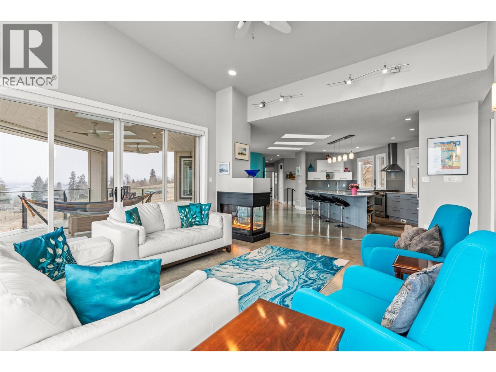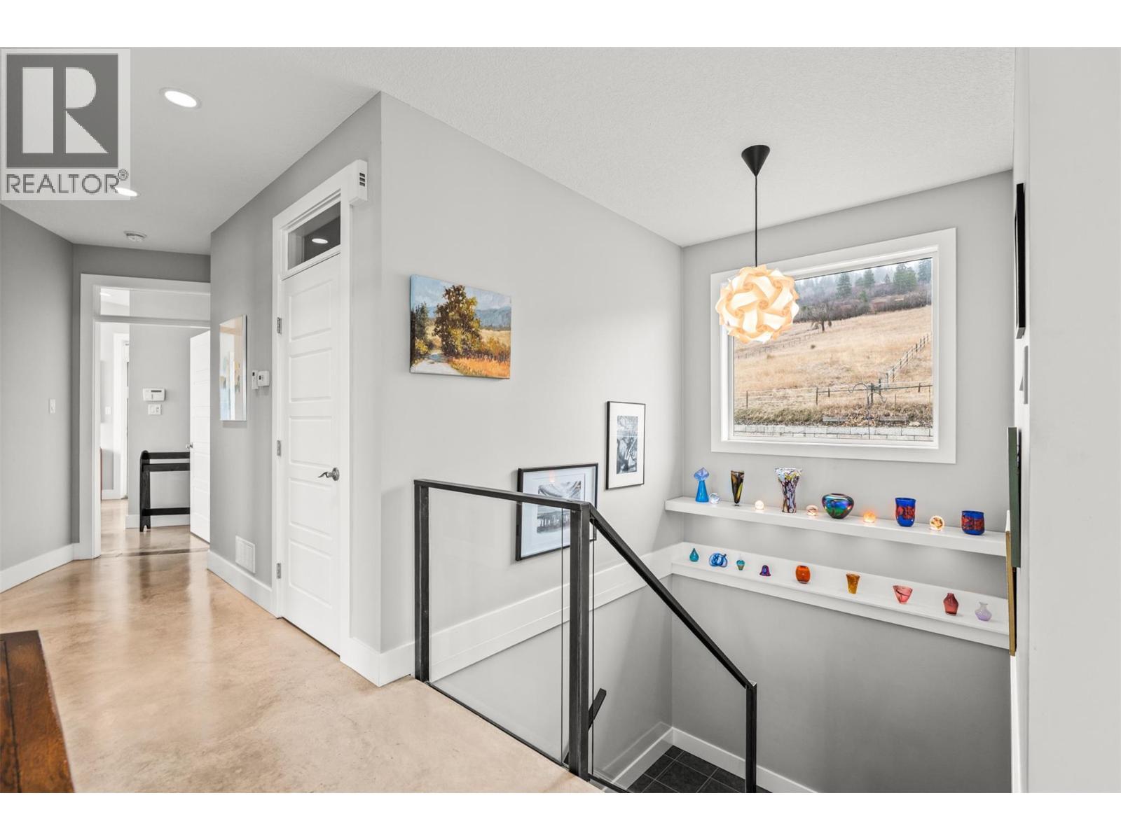 Set on over 5 private hillside acres in North BX, this custom-built 2012 rancher with walk-out basement captures sweeping views over Swan Lake and the city below, with sunsets that become part of the daily rhythm. Thoughtfully designed to maximize natural light and scenery to frame the landscape while in-floor heating on both levels ensures year-round comfort. The main level features marble kitchen countertops, motorized skylights, and seamless access to decks and patios, with five outdoor living spaces creating effortless indoor-outdoor flow. The primary suite offers a private patio, walk-in closet, and a spa-inspired ensuite with deep soaker tub and multi-head shower. Downstairs, bedrooms open directly outdoors, while a granite wet bar offers excellent entertaining space and easy potential for a one-bedroom suite. Generous storage connects to the oversized double garage. Durable finished-concrete style floors and Hardie board siding provide long-lasting, low-maintenance living. The fenced acreage is set up for horses or animals and backs directly onto the renowned Grey Canal Trail. A detached barn/workshop with separate water and power meters adds flexibility. Municipal water provides peace of mind (no water well concerns), Plus, enjoy a thriving garden with two varieties of plums and sour cherries, along with numerous different berry plants, hazelnuts, and wild asparagus. Located in the desirable BX Elementary and Vernon Secondary catchments, with no applicable vacancy tax (id:6769)