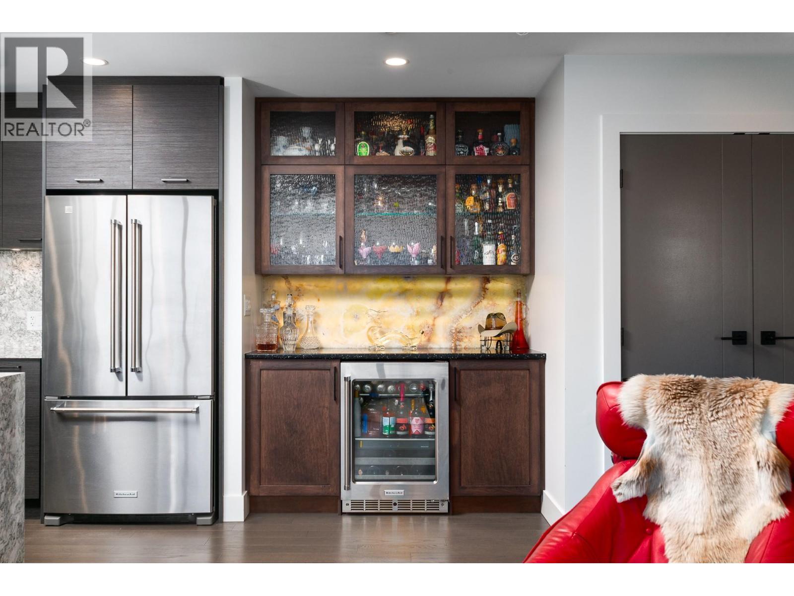 Perched on the 21st floor, this upgraded residence offers exceptional privacy and sweeping views from a large outdoor deck designed for entertaining and relaxation with a natural gas outlet and a truly unobstructed vantage point — a rare combination of elevation, privacy, and outdoor living. Inside, oak hardwood floors and floor-to-ceiling windows create a bright, refined living space that seamlessly blends modern design with smart functionality. The kitchen is a standout with waterfall-edge counters, granite sink, gas range, KitchenAid appliances and combi oven. A built-in bar with dual-zone KitchenAid beverage fridge adds an entertaining hub with a striking LED backlit onyx backsplash. Smart home features are integrated throughout, including touchscreen controls for lighting and music, along with built-in ceiling speakers in the kitchen and primary bedroom. Extra insulation along common walls enhances comfort and quiet. The primary suite offers a spacious walk-in closet and a stylish 3-piece ensuite with glass and tile shower. A generous second bedroom features large floor-to-ceiling windows and a full closet. The main bath includes a 4-piece layout with tile surround to the ceiling. Additional highlights include stacked laundry with added storage, and thoughtful upgrades throughout that elevate everyday living. Resort-style amenities including two pools, hot tub, fitness club with gym and yoga studio, pickleball court, dog park, BBQ and fire pit areas, and more! (id:6769)