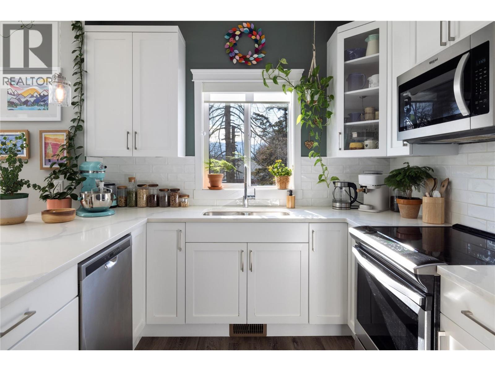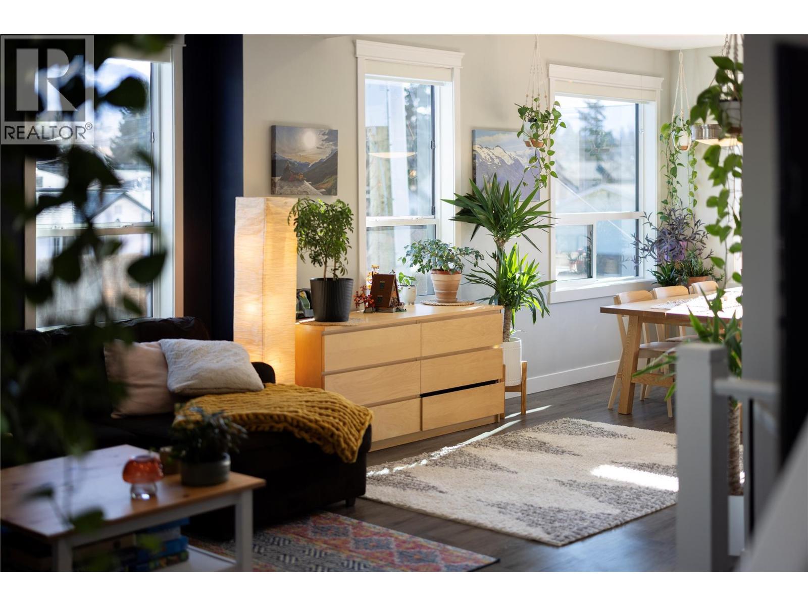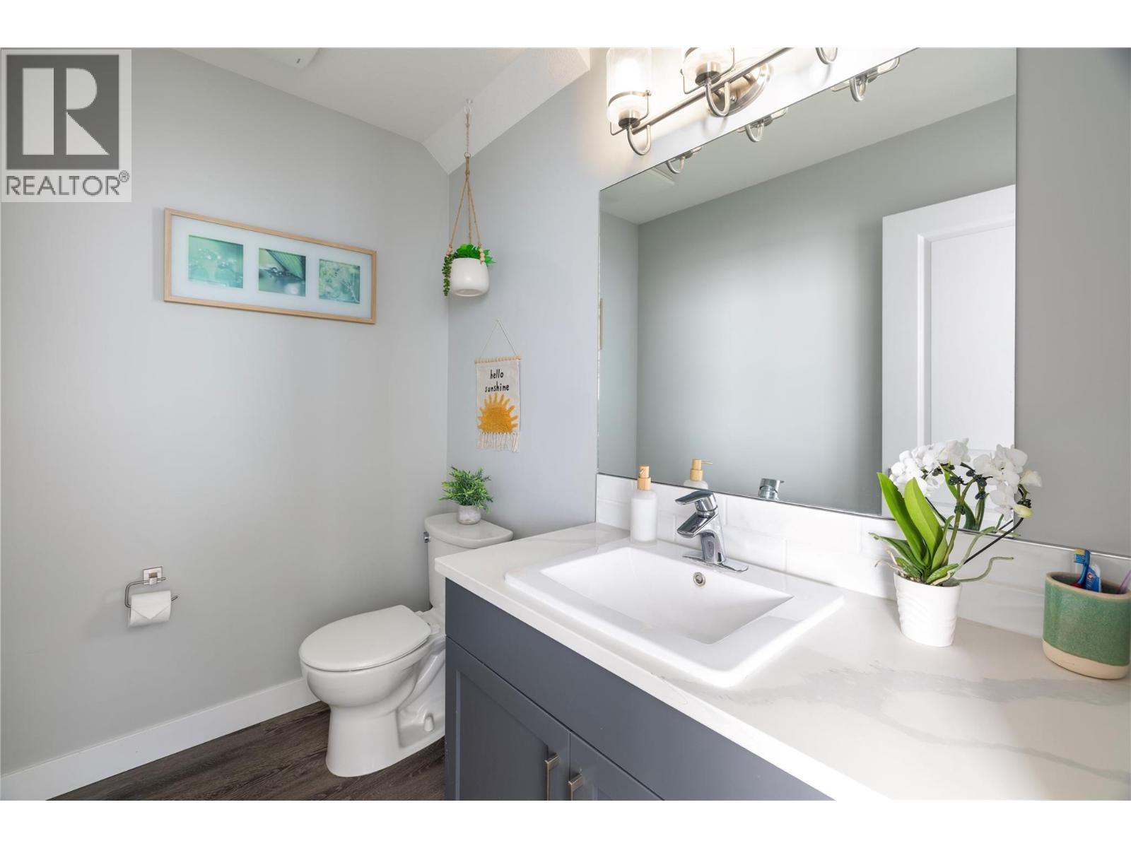 Modern corner unit townhome in the Heart of Harwood - Step into modern living with this beautifully designed three-bedroom townhouse located in the heart of Harwood. Combining contemporary style with in-town convenience, this home offers an excellent opportunity for those seeking low-maintenance, turn-key living, and a short walk to Harwood elementary school. The ground level features the front entry, and a tandem garage with the front portion offering flexibility for a second vehicle, a gym, storage, or hobby space. Upstairs, the main living area is bright and welcoming, filled with natural light and finished with luxury vinyl plank flooring throughout. The modern kitchen showcases sleek quartz countertops, stylish cabinetry, and a breakfast bar, perfect for casual dining or entertaining. The open-concept design flows seamlessly into the living area, with access to a covered balcony—an ideal spot to relax and enjoy the outdoors. The top floor provides privacy with all three bedrooms located on this level. The spacious main bedroom suite features a walk-in closet, and a beautiful ensuite with dual vanities, and a walk-in shower. Two additional bedrooms, a full bathroom, and convenient upper-level laundry complete the layout. A fantastic opportunity to enjoy modern townhouse living in one of Vernon’s most convenient neighbourhoods, close to shopping, schools, parks, and everyday amenities. (id:6769)