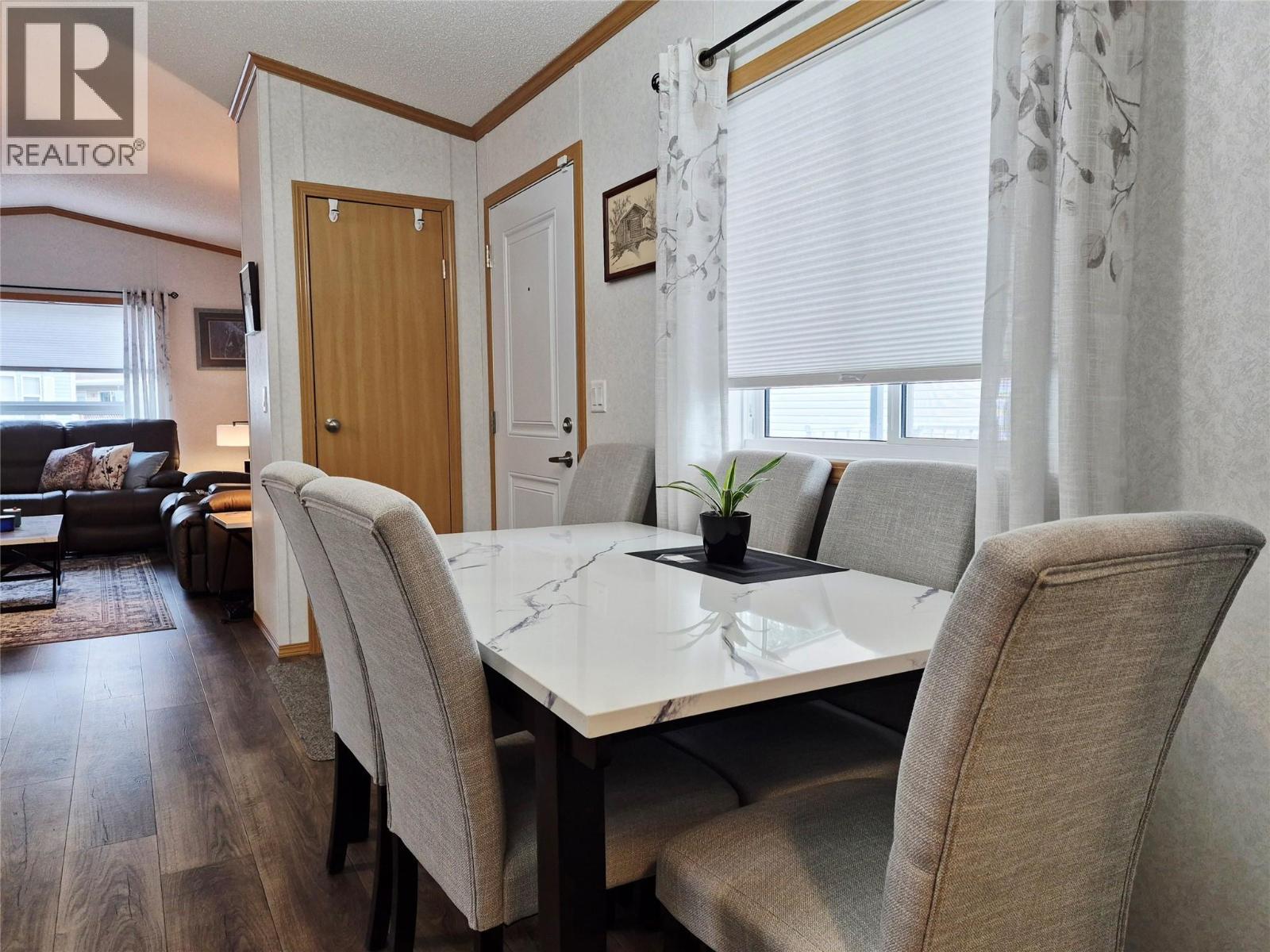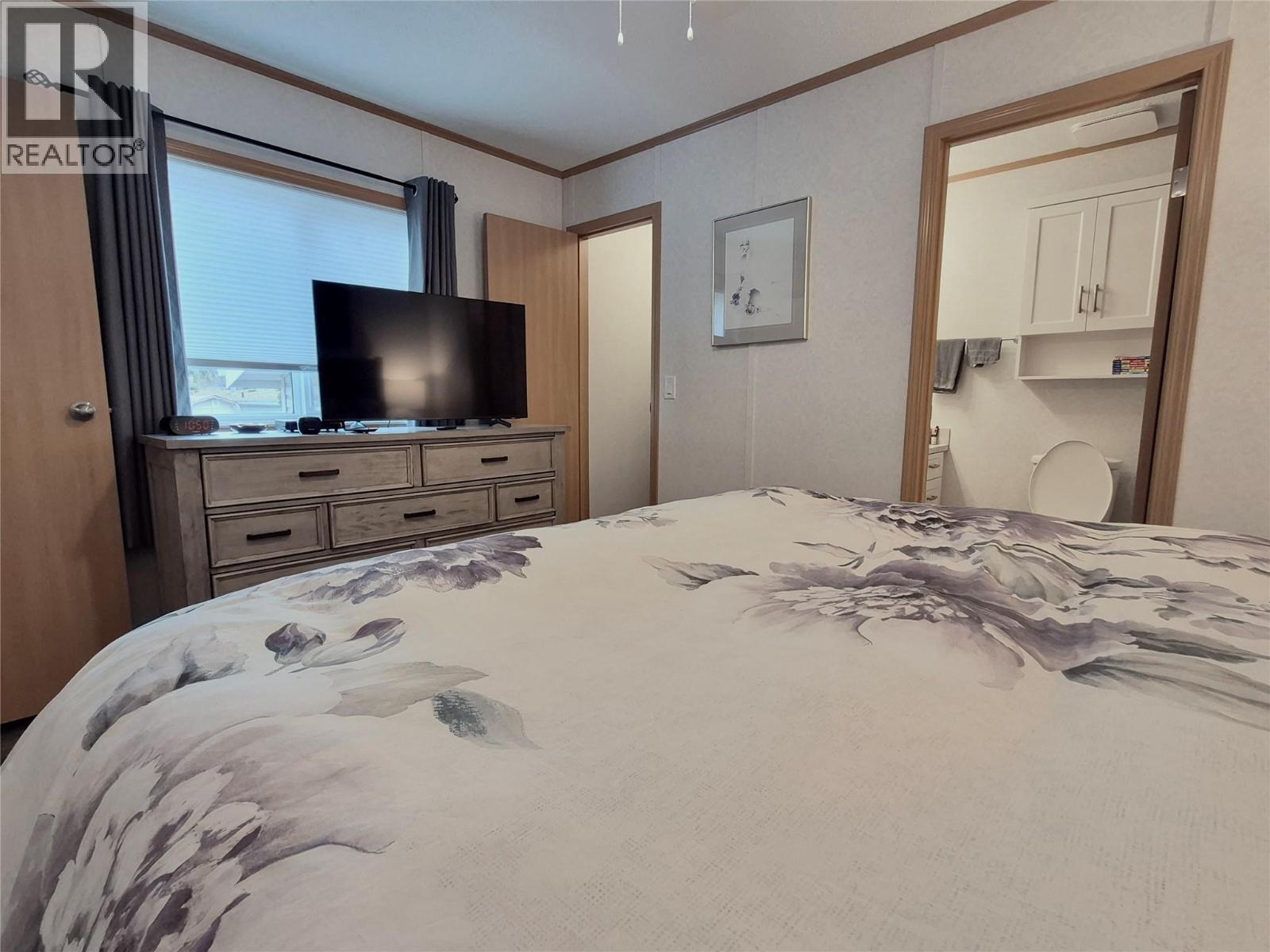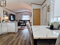 Almost brand new manufactured home in the very desirable Big Chief Mobile Home Park. This is a peaceful great community, with easy and close access to shopping and services with secure access to the Park and very nice landscaped grounds surrounding the area. Level bike paths and walking trails lead you easily to the lake. This is very handy living with all the conveniences but is easy to lock and go as well. This home was newly moved into this Park in 2024. There are 2 full bedrooms, 2 full bathrooms including a full ensuite off the Primary bedroom. This is a 14' x 66' and everything is just like brand new including the appliances. The kitchen cabinets are white with an eat in kitchen and ample cabinet and countertop space. This home offers a very neutral color tone pallet throughout and is bright spacious and has all the cabinets and storage areas set up for easy living. Open floor plan with vaulted ceilings in the main living areas and a fantastic primary bedroom at the back away from the street with a full enuite bathroom and walk in closet. There is a beautiful deck to the side access doors to the home and is partially covered for those hot days for shade or cover for winter so BBQ season can go year round. This is easy living and a no maintenance yard. There is handy shed at the rear and to the side which is insulated as well for storage items. This Park is 55+ and will allow an indoor cat but no dogs, sorry. Book a viewing today to see this great home. (id:6769)