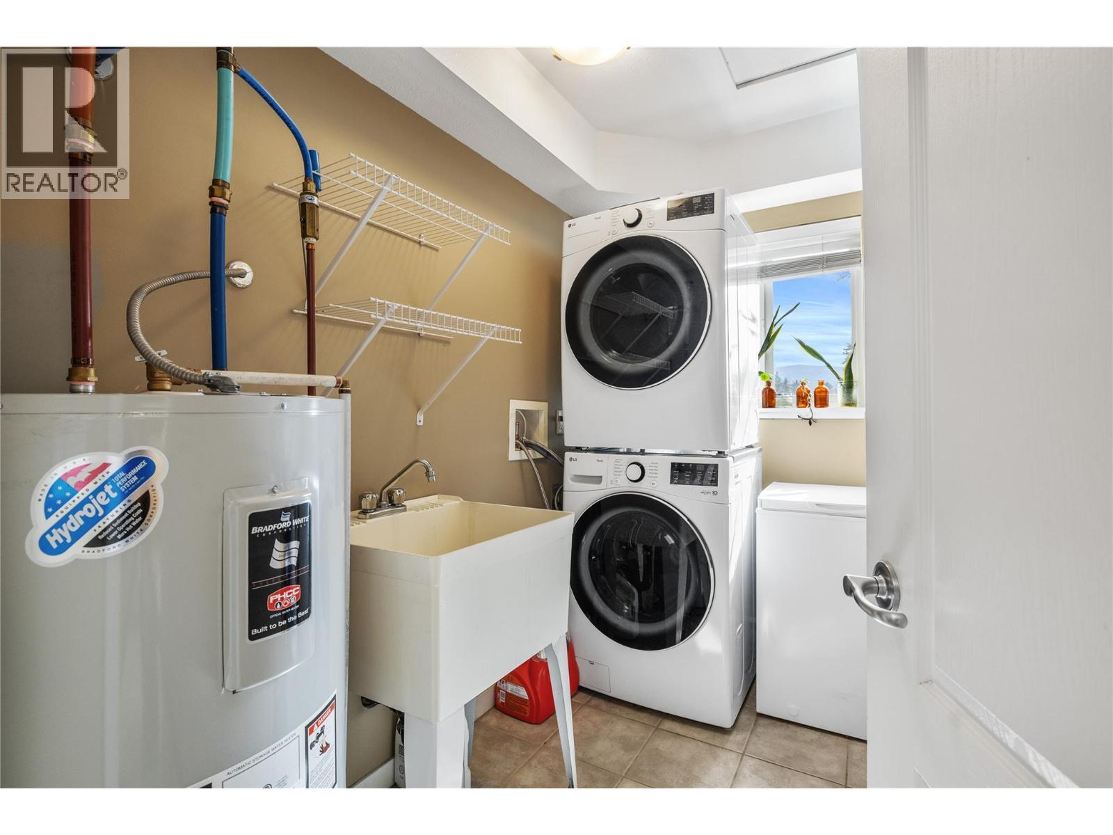 Welcome to Franklyn Central — a TOP FLOOR, corner two-bedroom suite with 2 SIDE BY SIDE PARKING STALLS & storage locker, that pairs affordability with standout practicality in one of Kelowna’s most central pockets. Enter from the foyer into a bright, inviting living room that opens onto a generous balcony accessible from both the living room and the primary bedroom — a calm spot for morning coffee overlooking peaceful green space. The kitchen is a pleasure to cook in, fitted with stainless steel appliances, shaker cabinetry and a smart layout that makes meal prep easy, sociable and enjoyable. The primary suite offers a large walk-in closet, and en suite. Practical living is elevated by a well-designed laundry/utility mudroom complete with a utility sink, stacked washer/dryer— an ideal workspace for laundry and outdoor gear. Corner exposure and top-floor placement deliver extra natural light, added privacy and a quieter outlook. The building welcomes residents of all ages, and 1 pet permitted with restrictions. Steps to Ben Lee Park, neighbourhood shopping, transit and everyday conveniences, all comfortably within walking distance make this budget-friendly unit perfect for buyers who prize effortless, walkable living, while prioritizing top-floor corner privacy and the tangible advantage of two parking stalls. (id:6769)