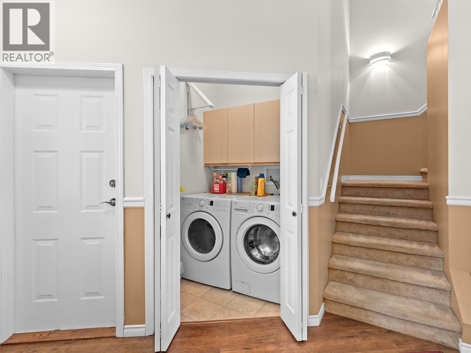 Welcome home to this 3 bed, 2.5 bath townhome offering comfort, functionality, and an unbeatable Lake Country location. Featuring 9 foot ceilings and a bright vaulted entry, this home is filled with natural light and is perfect for everyday living. The main floor offers an inviting dining area and living room enhanced by a cozy corner gas fireplace, creating a warm and welcoming atmosphere with glass patio doors providing direct access to a generous patio w/natural gas hook-up. The thoughtfully designed u-shaped kitchen provides an efficient workspace and bright corner kitchen windows above the sink. The spacious primary bedroom is conveniently located on the main floor w/ french door access to the patio, large double closet and ensuite w/walk-in shower. Laundry and 2 pce powder room complete the main. Upstairs are 2 additional large bedrooms and 4 piece bath perfect for the kiddos or guests. The single garage provides extra storage plus furnace and hot water tank neatly tucked-away for added convenience. There is also additional storage in the crawl space accessed under the stairs. Located just a short stroll to Wood Lake, Beasley Park, and Reiswig Park, and is also close to beaches, golf courses, schools, shopping, restaurants, and wineries. Situated on a convenient bus route with easy access to UBCO, Airport (10 mins away), and more. This family and pet (some restrictions) friendly complex welcomes all ages (w/some restrictions), making it the perfect place to call home. (id:6769)