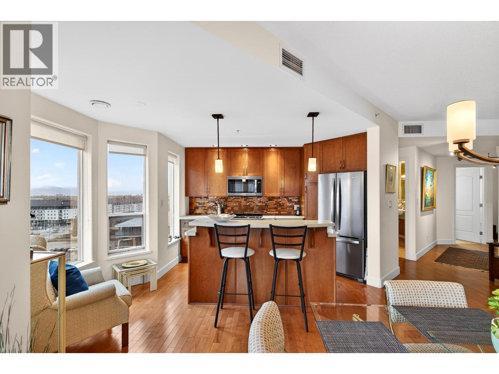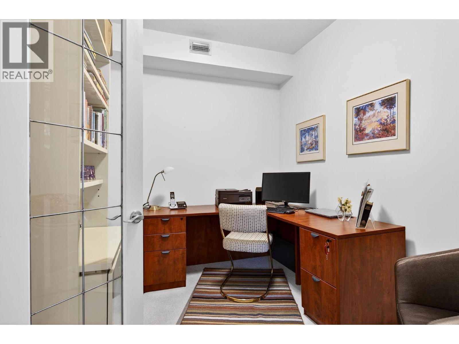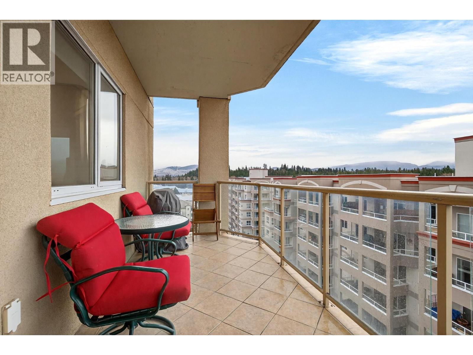 Elevated above it all, this exceptional corner residence at Park Place offers a level of space, light, and views that is rarely found in Kelowna condo living. Perched on the 10th floor south east corner of Park Place, this 1,335 sq ft 2 bed 2 bath plus den suite captures sweeping lake and valley views through walls of windows that flood the home with natural light, while staying cool and comfortable through Kelowna’s long summers with central heating and cooling throughout. 2 side by side underground parking stalls and 3 oversized storage lockers, including one conveniently located on the same floor. Inside, the open concept layout is finished with maple hardwood, a granite island, stainless steel appliances, upgraded lighting, and a gas fireplace that anchors the living space. The spacious primary bedroom features a walk in closet and a well appointed ensuite with a double vanity and soaker tub, offering a comfortable retreat at the end of the day. Park Place elevates the lifestyle with resort style amenities including a pool, hot tub, fitness centre, theatre room, library, pool table, woodworking shop, tennis court, car wash, and guest suite, all within a solid concrete and steel building. The location completes the package. Steps to Costco, a short walk to Mission Creek Greenway, minutes to Orchard Park Shopping Centre, and a quick drive to downtown Kelowna’s beaches, restaurants, and cultural district. (id:6769)
