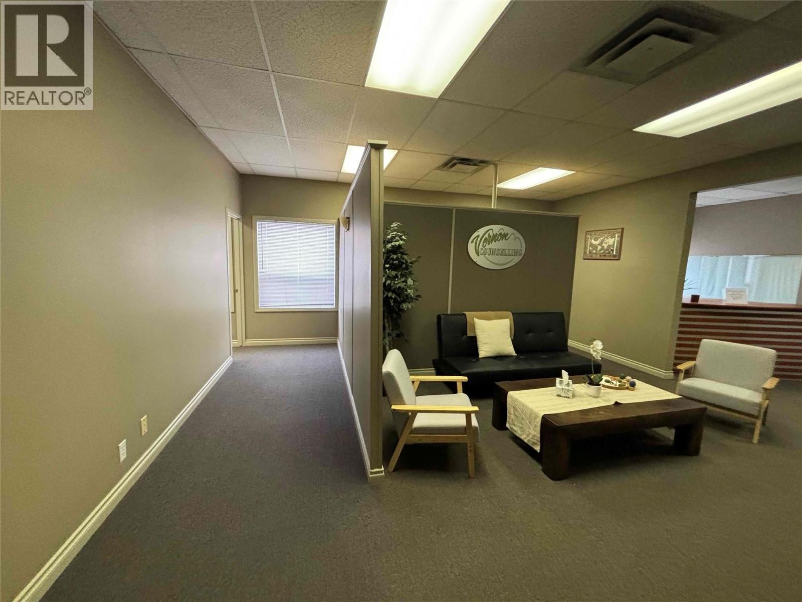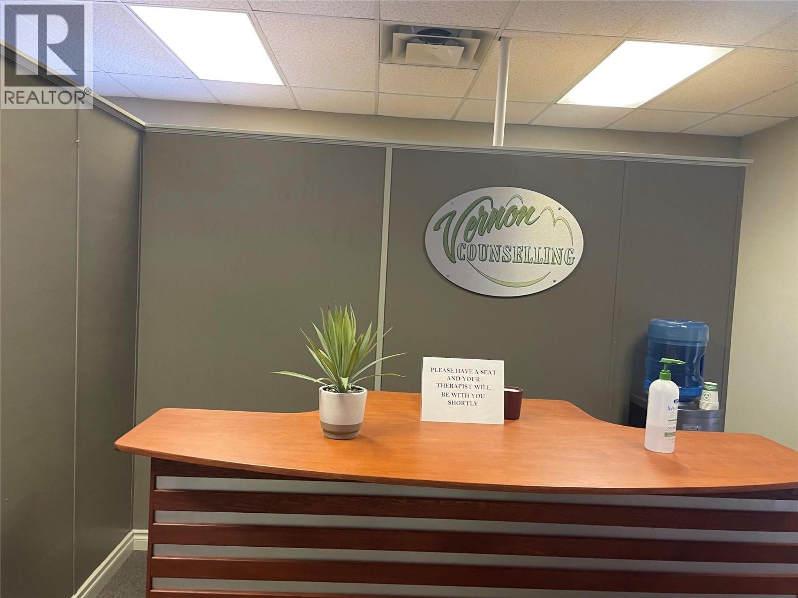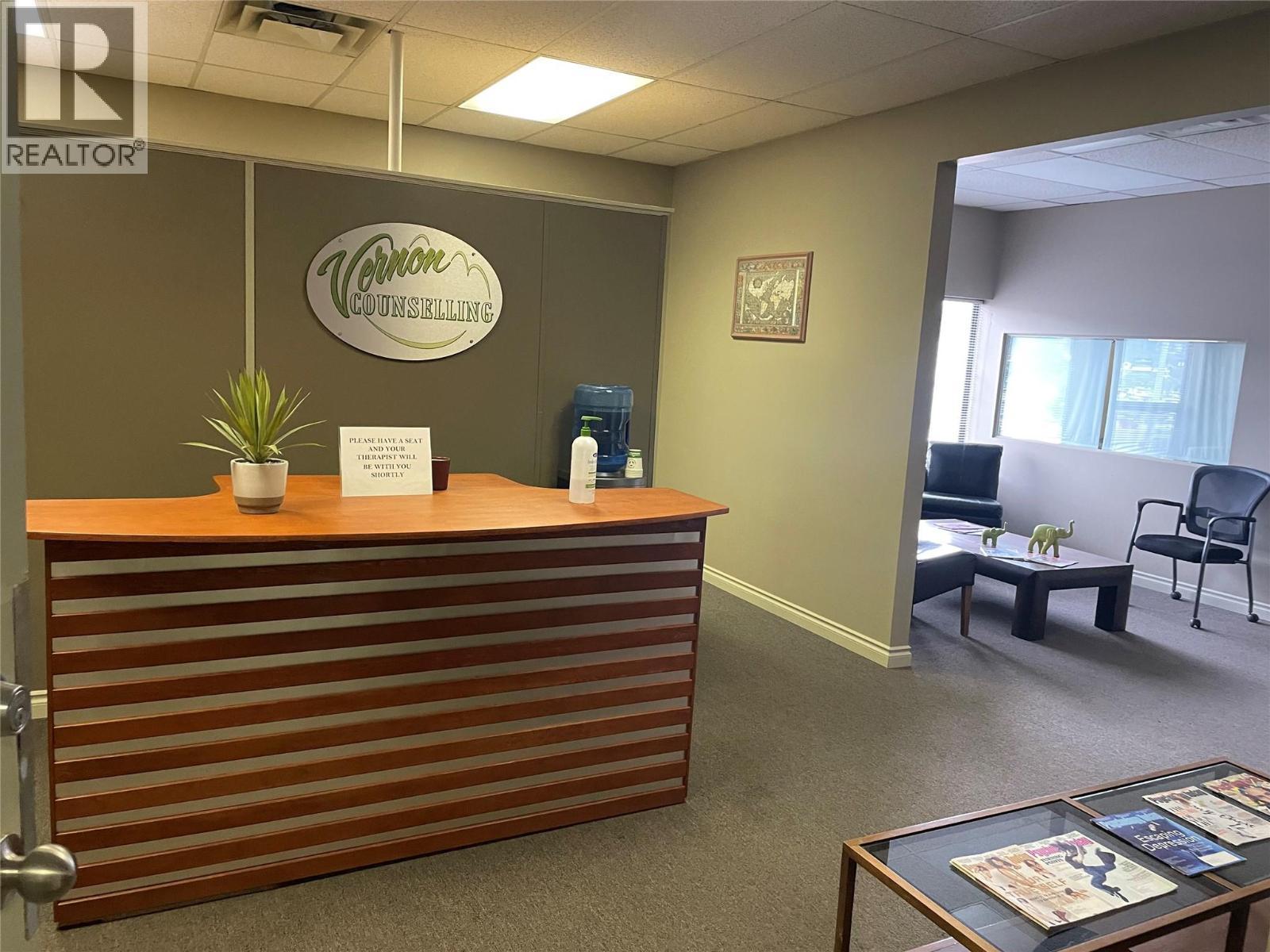 Professional second-floor office space available in a high-exposure location on 48th Avenue in Vernon. This functional unit offers multiple private offices, a welcoming reception or waiting area making it ideal for professional users such as counselling, accounting, medical, or administrative services. The building and unit are currently undergoing upgrades, including new carpet and fresh paint throughout both the common areas and the unit, providing a clean and updated environment for your business. With great natural light, strong visibility, and convenient access for clients, this space is well-positioned in one of Vernon’s most recognized commercial corridors. Available soon. Contact for more information or to book a showing. (id:6769)