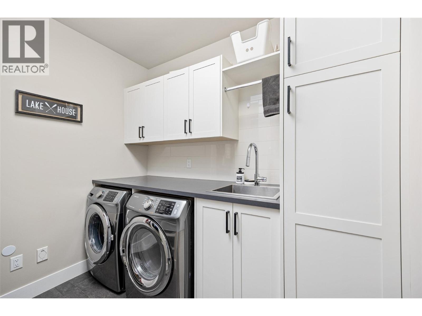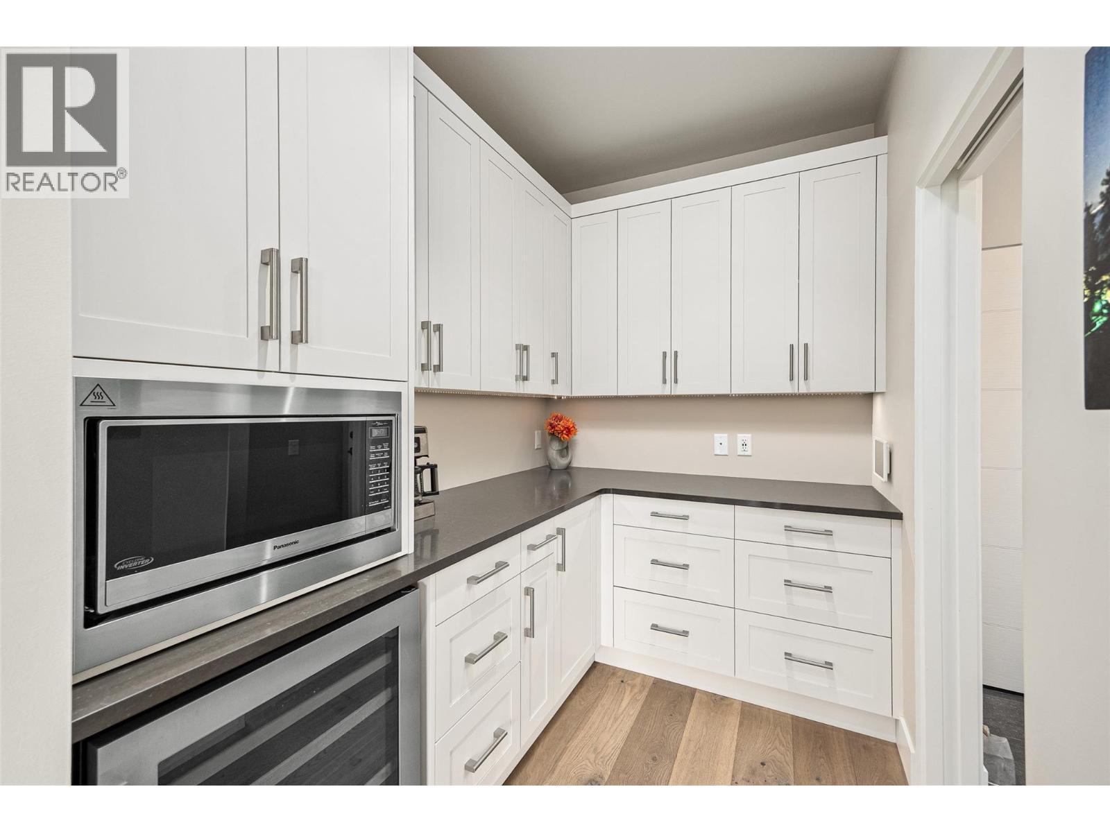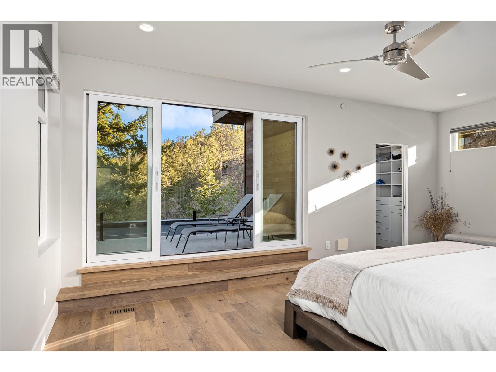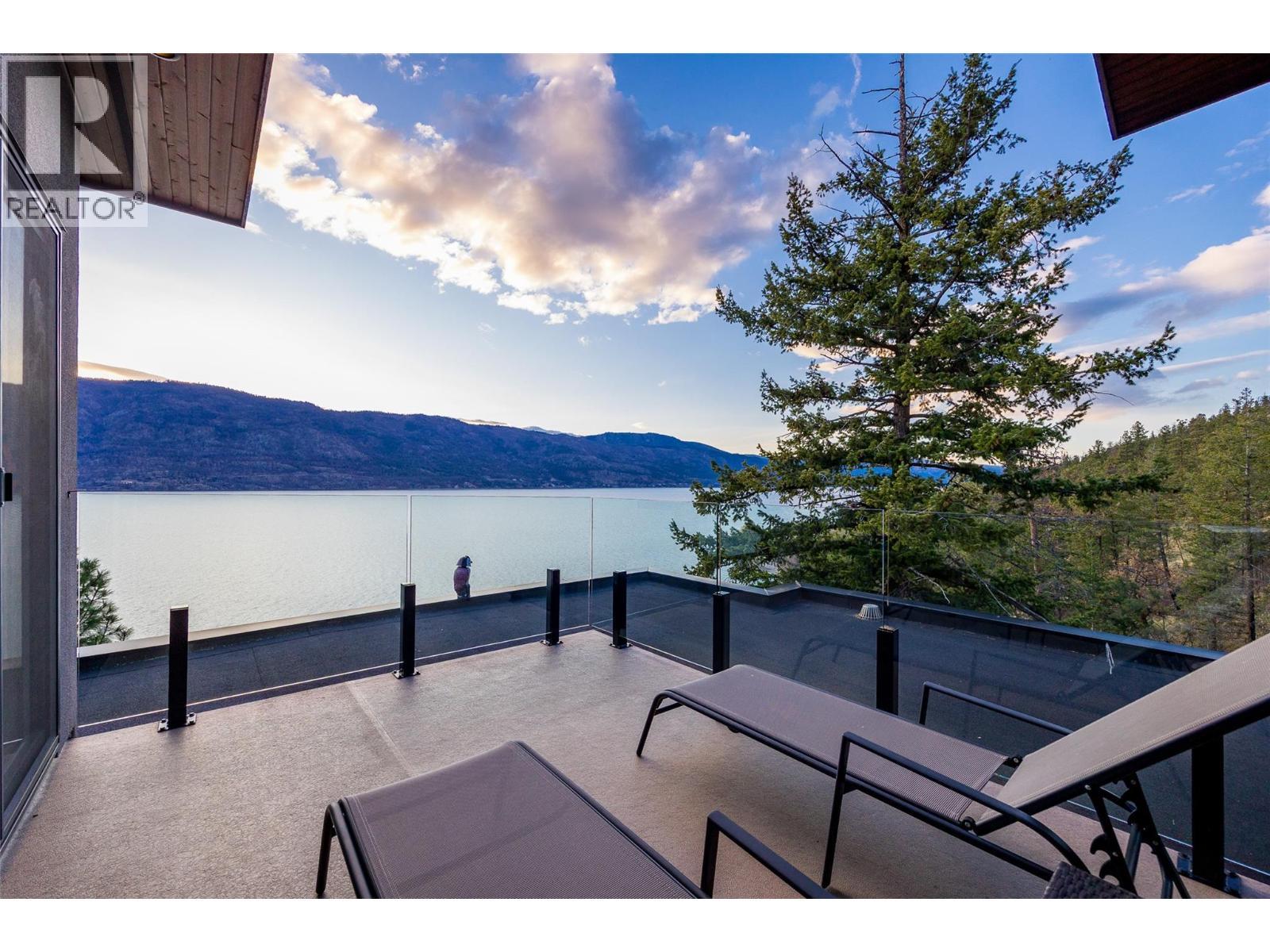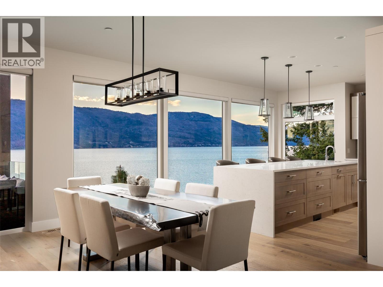 Panoramic Okanagan Lake views define this exceptional one-owner home in the prestigious Waterside community of Lakestone. Offering 3 beds + den and 4 baths across approx. 3,400 sqft., this residence is set at the end of a quiet street with only one neighbour, offering rare privacy. Designed with elegance in mind, the main level features engineered hardwood flooring, expansive floor-to-ceiling windows, and the chef-inspired kitchen including quartz countertops with a waterfall island, a butler’s pantry with beverage fridge, and powered blinds. Step outside to the main patio with natural gas hookups, overhead heaters, seamless glass railings, and built-in speakers for seamless indoor-outdoor living. Upstairs, the entire level is dedicated to a luxurious primary retreat with a private patio, walk-in closet, and spa-like ensuite with heated floors, dual vanity, heated towel rack, and walk-in shower. The lower level offers flexible space with 2 beds & baths, a family room with a bar, and a deck wired for a hot tub with motorized phantom screens. Additional features include a double-car garage with an EV charger, main floor laundry/mudroom, and a den with a built-in wall bed. Enjoy exclusive access to Lakestone’s resort-style amenities, including the Lake Club and Centre Club, outdoor pools, fitness centres, social spaces, public docks, over 28 km of hiking and biking trails and much more. Book your private showing today in one of the Okanagan’s most sought-after communities. (id:6769)