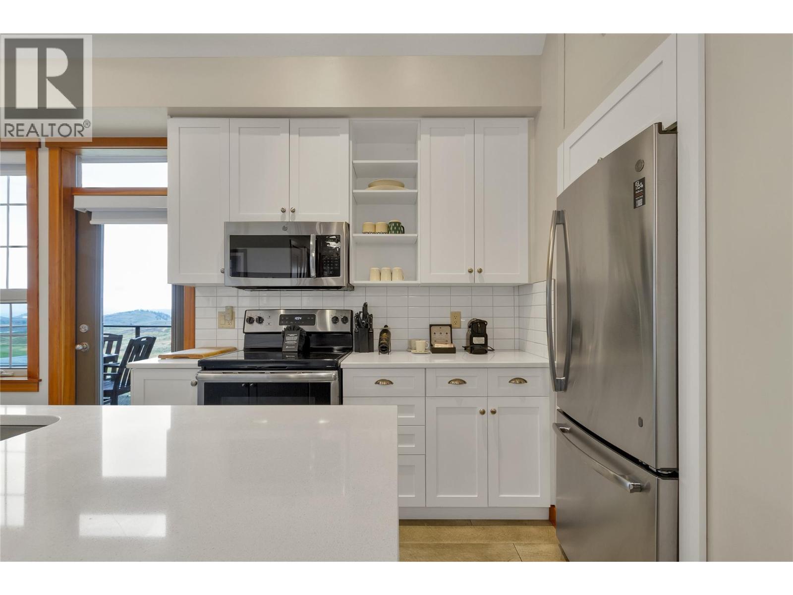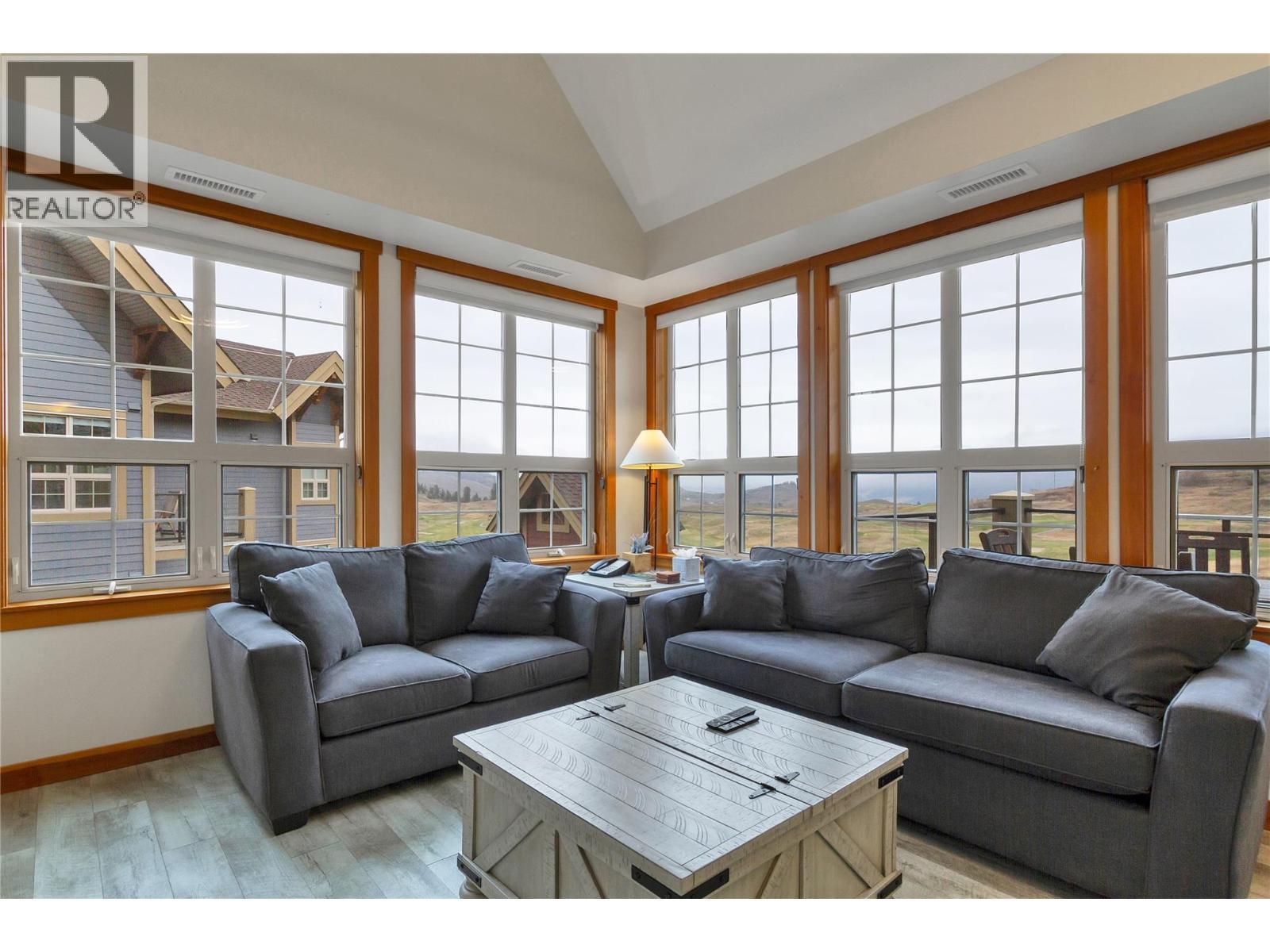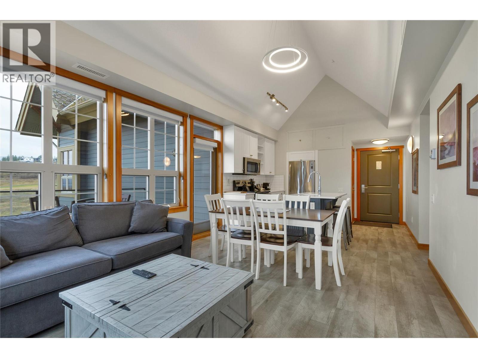 Welcome to your elevated lifestyle at Predator Ridge! This beautifully appointed 2 bed, 2 bath top-floor unit in The Lodges offers vaulted ceilings, abundant natural light, and breathtaking views over the award-winning golf course and surrounding hills. Thoughtfully designed, the open-concept layout features a bright kitchen with quartz counters, stainless steel appliances, and a large island perfect for entertaining. The dining and living areas flow seamlessly to a lovely deck area, where you can relax and take in panoramic fairway and mountain vistas. The spacious primary bedroom includes a full spa-like ensuite with jeted tub, while the second bedroom is ideal for guests or a home office. Extremely functional layout! Enjoy resort-style living with access to Predator Ridge’s world-class amenities, including two championship golf courses, tennis courts, pickleball courts, hiking and biking trails, fitness centre, indoor and out door pools, and a full-service recreation centre. Whether as a full-time residence (some fees would apply), vacation getaway, or investment opportunity, this turnkey fully furnished unit offers the ultimate Okanagan lifestyle. Live, play, and unwind—this is Predator Ridge at its finest. (id:6769)
