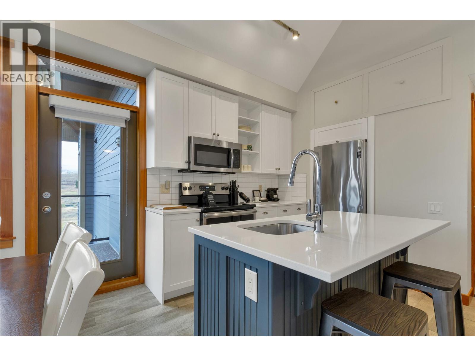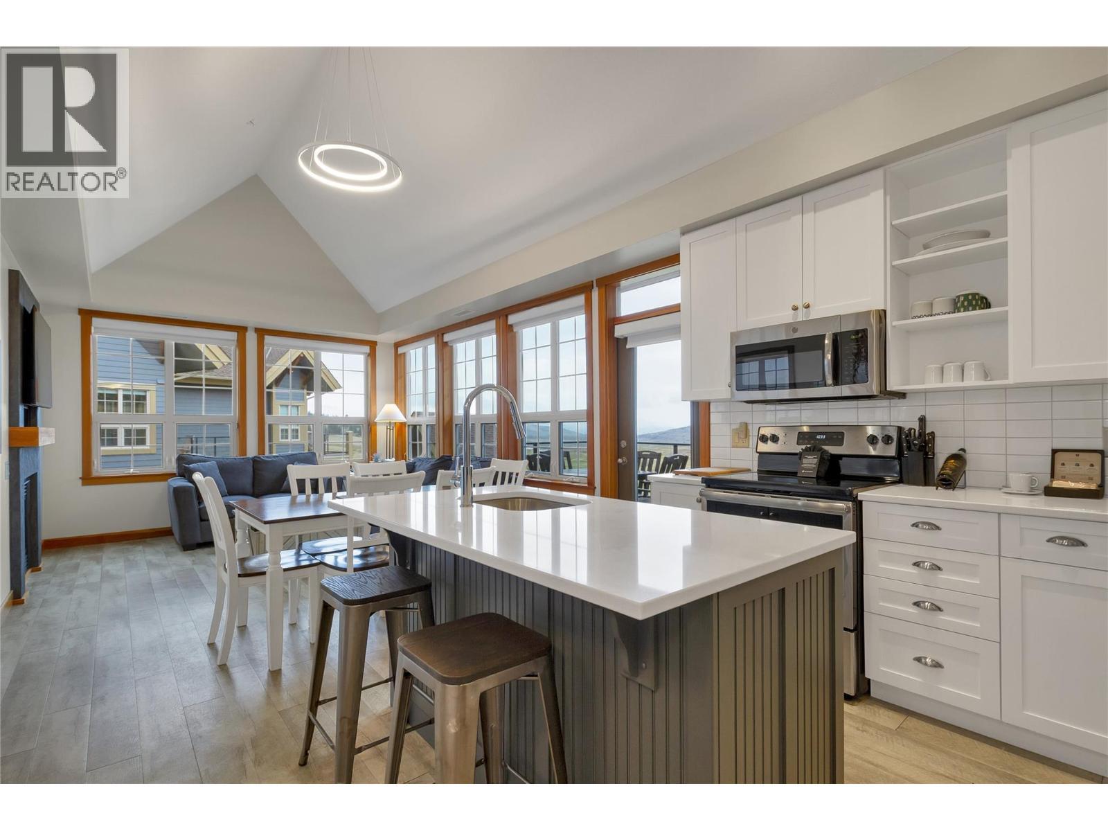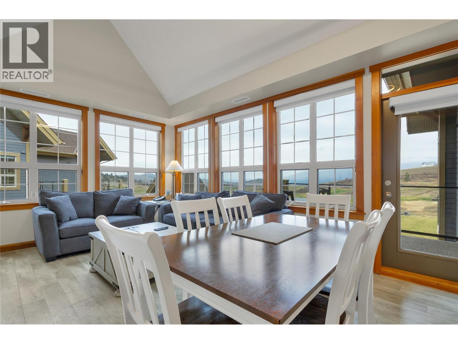 Welcome to your elevated lifestyle at Predator Ridge! This beautifully appointed 2 bed, 2 bath top-floor unit in The Lodges offers vaulted ceilings, abundant natural light, and breathtaking views over the award-winning golf course and surrounding hills. Thoughtfully designed, the open-concept layout features a bright kitchen with quartz counters, stainless steel appliances, and a large island perfect for entertaining. The dining and living areas flow seamlessly to a lovely deck area, where you can relax and take in panoramic fairway and mountain vistas. The spacious primary bedroom includes a full spa-like ensuite with jeted tub, while the second bedroom is ideal for guests or a home office. Extremely functional layout! Enjoy resort-style living with access to Predator Ridge’s world-class amenities, including two championship golf courses, tennis courts, pickleball courts, hiking and biking trails, fitness centre, indoor and out door pools, and a full-service recreation centre. Whether as a full-time residence (some fees would apply), vacation getaway, or investment opportunity, this turnkey fully furnished unit offers the ultimate Okanagan lifestyle. Live, play, and unwind—this is Predator Ridge at its finest. (id:6769)