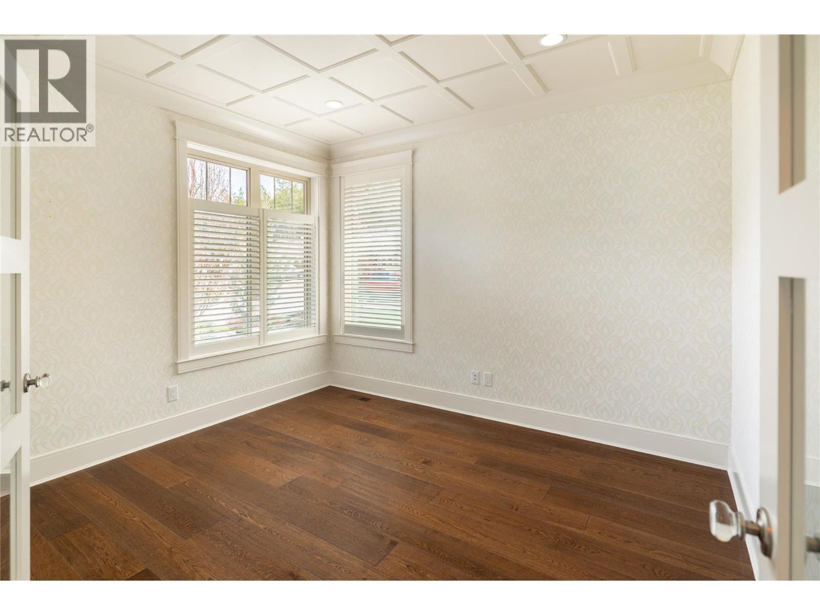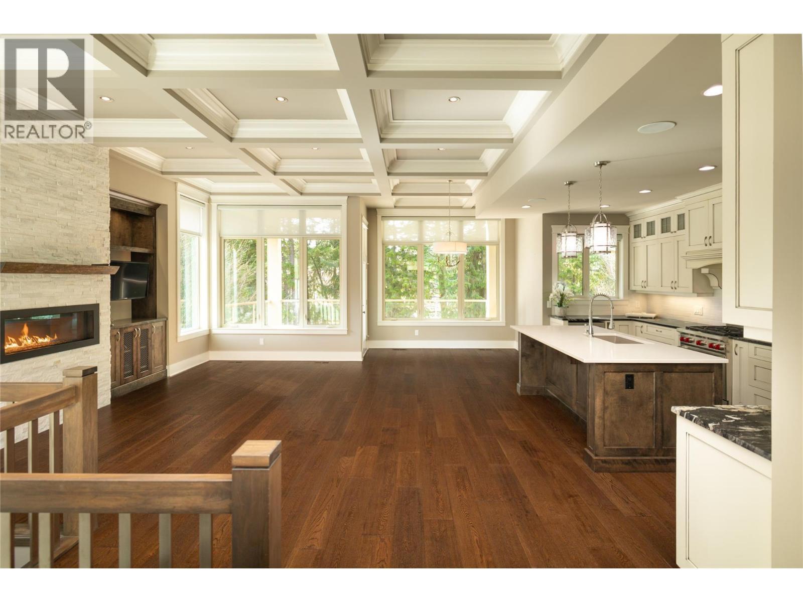 Set within the sought-after community of Gallaghers Canyon, this beautifully finished home offers timeless design, thoughtful upgrades, and a private setting surrounded by mature greenery. Striking curb appeal with stone and Hardie siding, a covered entry, and a charming front patio welcomes you in. Inside, tall ceilings and coffered detailing create a refined feel throughout. The kitchen blends style and function with classic white cabinetry, large island, Wolf range, and walk-in pantry. The living room centres around a floor-to-ceiling stone fireplace with custom built-ins, while a main floor office/den with custom ceiling detail adds versatility. The primary suite is a true retreat with crown moulding accents, designer wallpaper, and a well-appointed ensuite featuring dual sinks, a soaker tub, and walk-in shower. Cohesive cabinetry and finishes carry throughout the home. The lower level is designed for entertaining, offering a spacious recreation area, family room with built-ins, and a stunning wet bar with storage. Walk out to a covered patio overlooking private, lush greenspace. Two additional bedrooms and a full bathroom complete the space. Low-maintenance landscaping, built-in speakers, and electric blinds add to the home’s comfort and convenience. Enjoy the Gallaghers lifestyle with access to golf, fitness centre, indoor pool, tennis courts, clubhouse, and scenic walking trails—just minutes from everyday amenities. (id:6769)