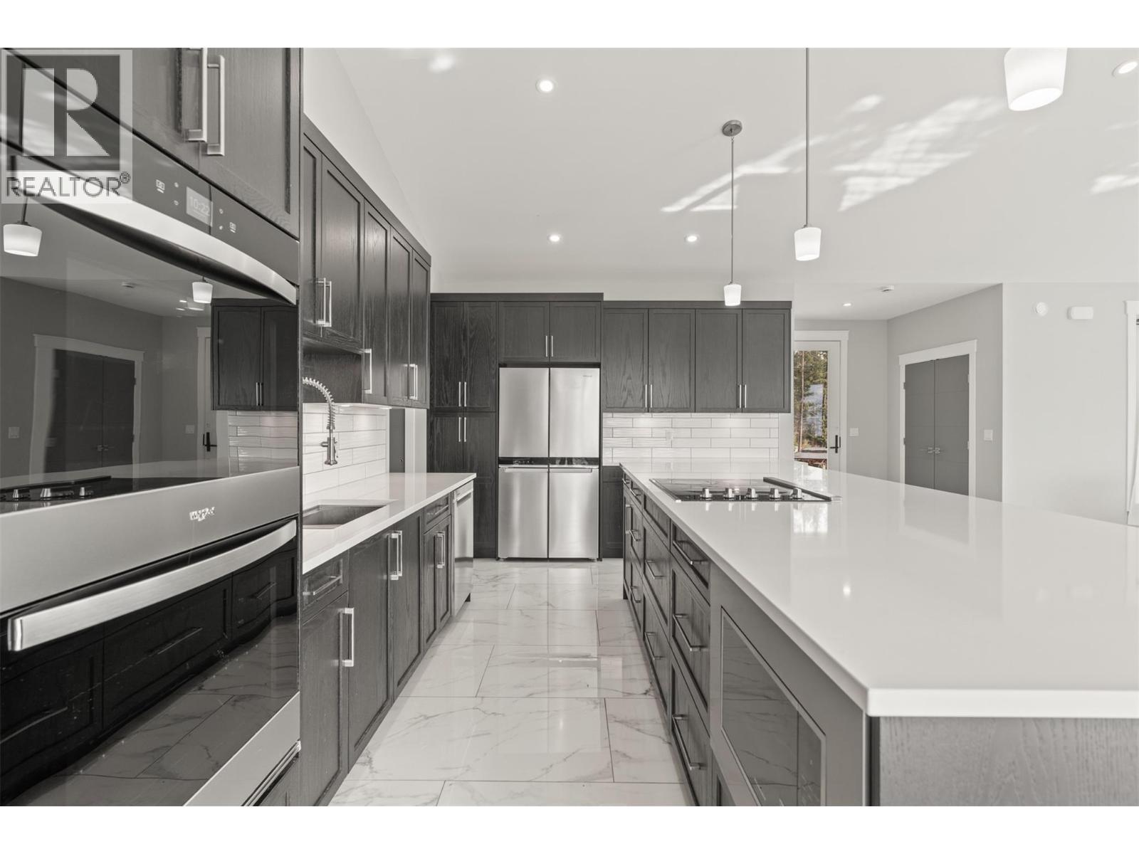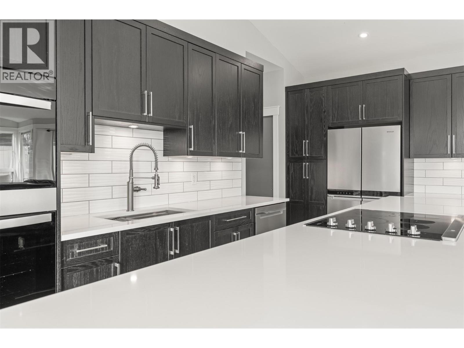 Why build when you can have it all—without the wait or added GST? Set on a flat and usable ¾ acre lot along the Westside Road neighbourhood, this newly built 2025 rancher offers modern design, natural light, and excellent future potential. Large windows frame lake and city views while creating a bright, open living space throughout. The home features four bedrooms plus a dedicated den or office and three full bathrooms, including heated floors and a heated towel rack. The contemporary kitchen includes solid wood cabinetry and new appliances, including an upgraded silent dishwasher, and flows seamlessly into the main living area anchored by an electric fireplace. Outside, a covered patio extends the living space, while the oversized attached garage is fully finished and heated with additional RV parking available. The flat lot offers ample space for a shop, pool, or further development. Prewired for a hot tub, with a brand new septic system, municipal water, and full home warranty, this property offers a rare opportunity to enjoy the benefits of a new build without the typical costs or delays. (id:6769)