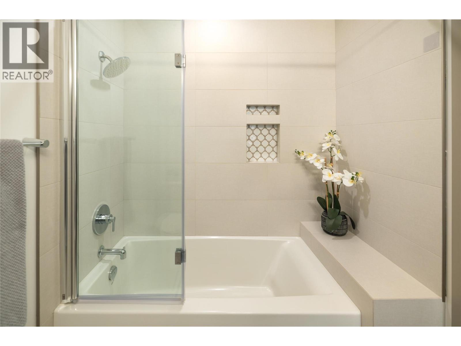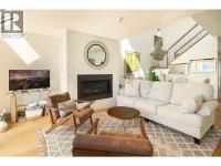 Welcome to your own lakeside retreat—where relaxed coastal charm meets refined, modern living. This beautifully updated 2 bedroom + loft, 2 bathroom condo captures a timeless “beach vibe,” offering breathtaking lake and mountain views from both levels, all within a sought-after gated waterfront community. From the moment you enter, you’re greeted by a bright, inviting vestibule with heated floors and a custom built-in bench—setting the tone for the thoughtful design throughout. The main level features two spacious bedrooms, including a serene primary suite with a walkthrough closet and a spa-inspired 4-piece ensuite, complete with heated floors. The heart of the home is the open-concept living, dining, and kitchen area, where vaulted ceilings and expansive windows frame the stunning lake views. A stylish gas fireplace with shiplap surround adds warmth and character, while wide plank hardwood flooring and quartz countertops complement the soft, neutral palette—perfectly aligned with today’s shift toward warm, natural tones. Upstairs, the airy loft offers a versatile family room or retreat space, overlooking the main living area and extending the home’s sense of openness and light. Outdoor living is equally impressive, with generous patio space on both levels connected by a charming spiral staircase—ideal for entertaining or simply soaking in the scenery. Immaculate and beautifully curated, this home is a rare opportunity to enjoy elevated beachfront living in a peaceful, private setting. (id:6769)