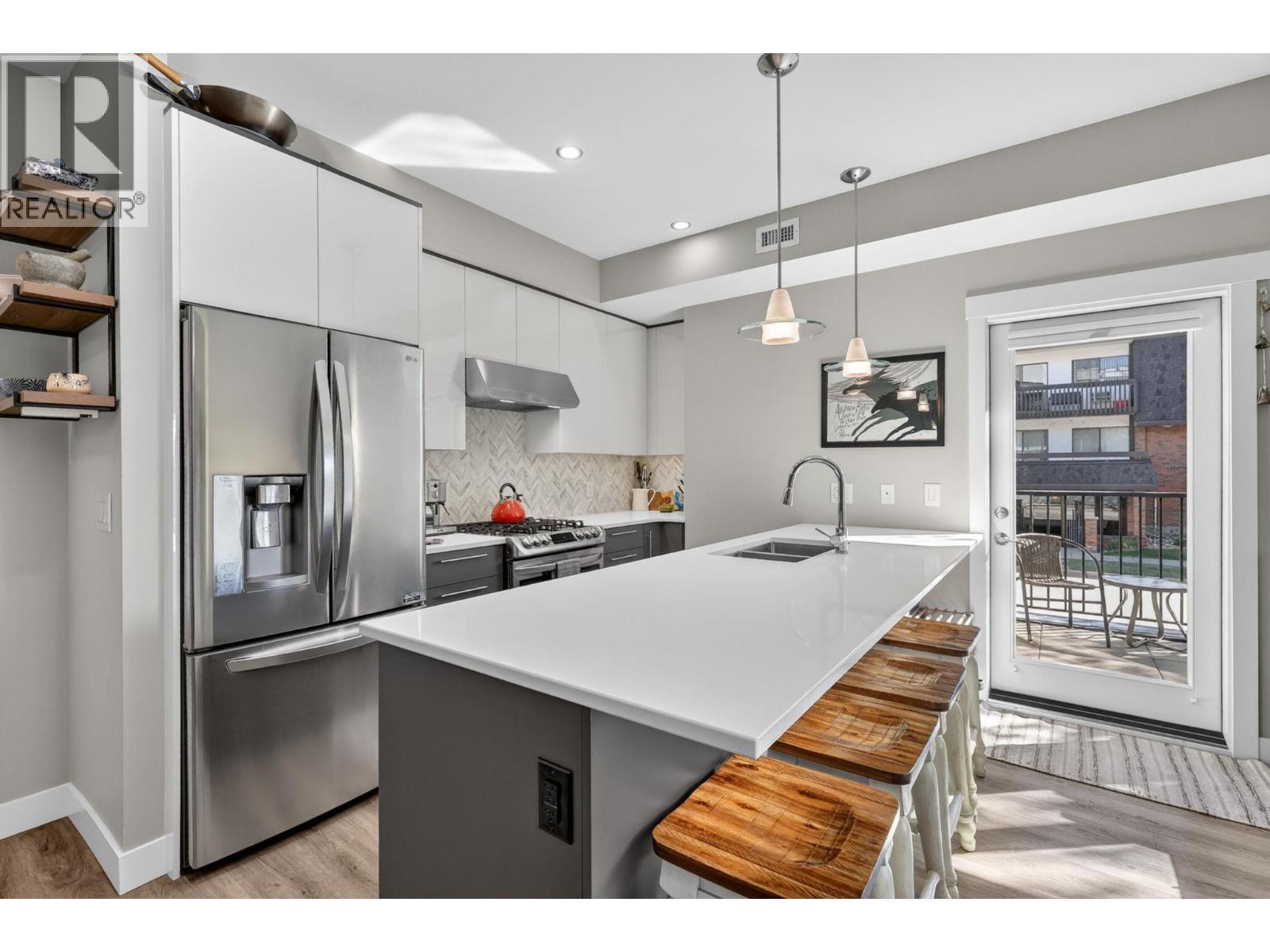 Bright, modern ground-floor condo in the heart of Kelowna! Built in 2018, this 3 bed, 2 bath home offers 1,125 sqft of stylish open-concept living with granite counters, a large island, and stainless steel appliances. Enjoy abundant natural light, forced air heating, central A/C, and a cozy electric fireplace. Rare direct walk-out access to your private patio plus a second deck—perfect for seamless indoor-outdoor living. Includes 2 secure underground parking stalls and access to an amenity center. Pet-friendly (small dog allowed) with no age restrictions. Walk to downtown, beaches, and shopping—ideal for young professionals, first-time buyers, or downsizers seeking the Okanagan lifestyle. (id:6769)