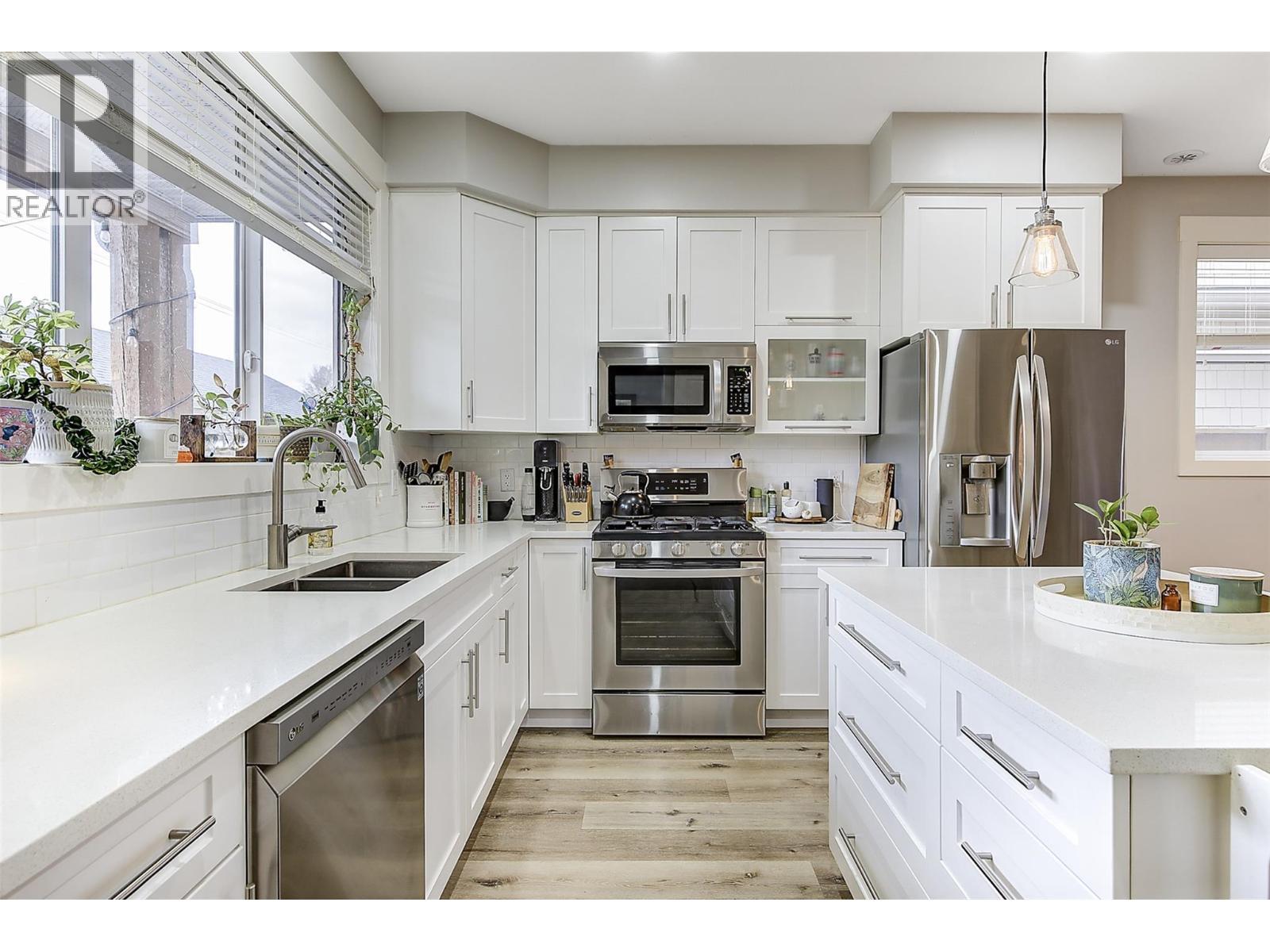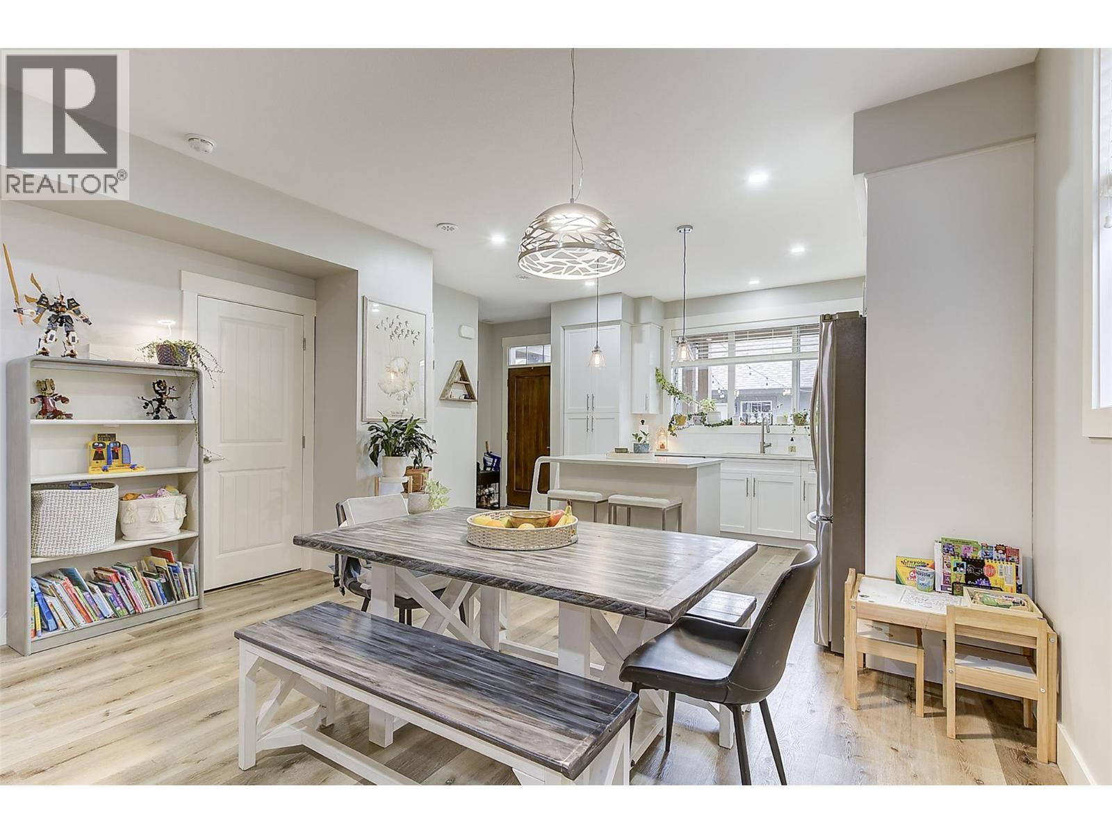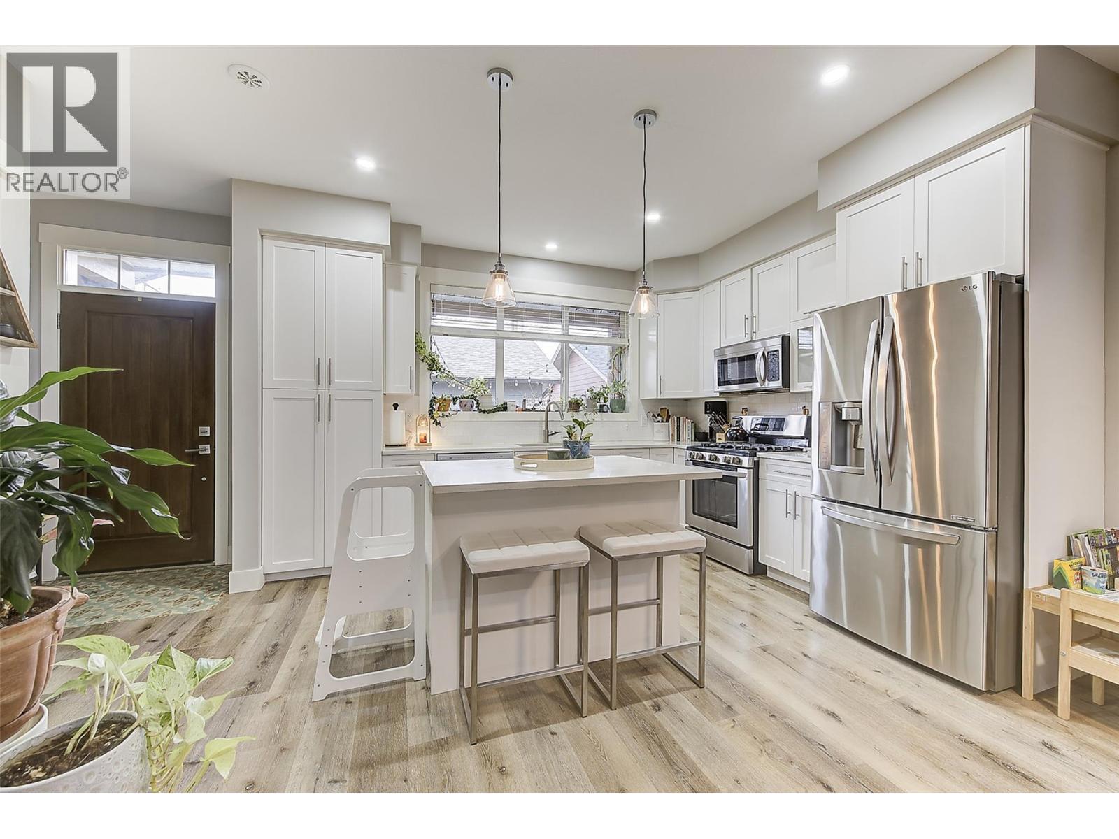 Experience relaxed, connected Kelowna living in this beautifully maintained townhome crafted by Maraine Construction. Thoughtfully designed with a warm, modern aesthetic, the home offers an inviting atmosphere from the moment you step inside. Sunlit living spaces create an easy flow for daily life—perfect for quiet mornings, relaxed evenings, or hosting friends in comfort. The kitchen’s quartz surfaces, stainless steel appliances, and gas range set the stage for effortless cooking and gathering. Upstairs, two bright bedrooms—primary with its own ensuite— provide privacy and comfort for homeowners, guests, or renters. A rare advantage in this category, the generous yard offers room to unwind outdoors, garden, or simply enjoy your own slice of city space. With covered garage parking, extra storage (including above-garage storage accessed by pull-down stairs), and efficient heating and cooling, the home delivers convenience without compromise. Situated near transit, schools, and essential amenities—and within a five-minute walk to three different parks with playgrounds—the location unlocks a genuinely walkable lifestyle. Bike or stroll to Pandosy Village or Downtown with ease, supported by direct access to the Ethel biking corridor. Offering style, comfort, and long-term value, this thoughtfully kept two-story townhome is an appealing alternative to condo living—ideal for a first home, investment, or those seeking a vibrant urban-adjacent community. (id:6769)