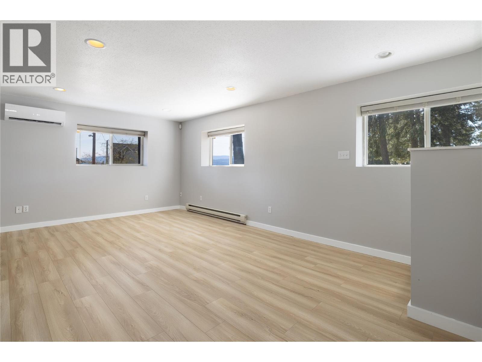 Welcome to the Crown of Westshore Estates! This amazing circlular street sits solitary overlooking the vast eastern horizon of Okanagan Lake, Vernon and Beyond! This highly versatile, 2800 sq/ft 4 Bed, 2.5 Bath home provides a perfect blend of rural tranquility and vacation-style living over a flat quarter-acre lot. The front main deck is a whopping 450 sq/ft with views out to Okanagan Lake comes with a retractable awning. From here you enter the spacious main foyer to an adjacent stylish kitchen with ample counters and shaker cupboards that make preparation a breeze. The dining room and living room areas provide a place to entertain and do life well! The master bedroom has 2 closets and a 2 piece bath. The 2nd bedroom on the main is spacious down a private hallway. Head down stairs and you enter a bright and inviting daylight 2 bedroom suite with a large family room on new floors, high ceilings, a den/ media space, its own private laundry, kitchen with granite counters even and ground level separate entrance. The sellers in 2026 replaced the Poly B with Pex for $15k. A newer, large Heat pump with 4 mini split units was installed for all your heating and cooling needs. This property could easily sport a detached shop for those things that need a heated, secure space. Rent the suite for approx $2k per month long term or AirBnB it! Lifestyle is at the forefront here with local parks and a short drive Killiney Beach and boat launch! Welcome Home on the Westshore! (id:6769)