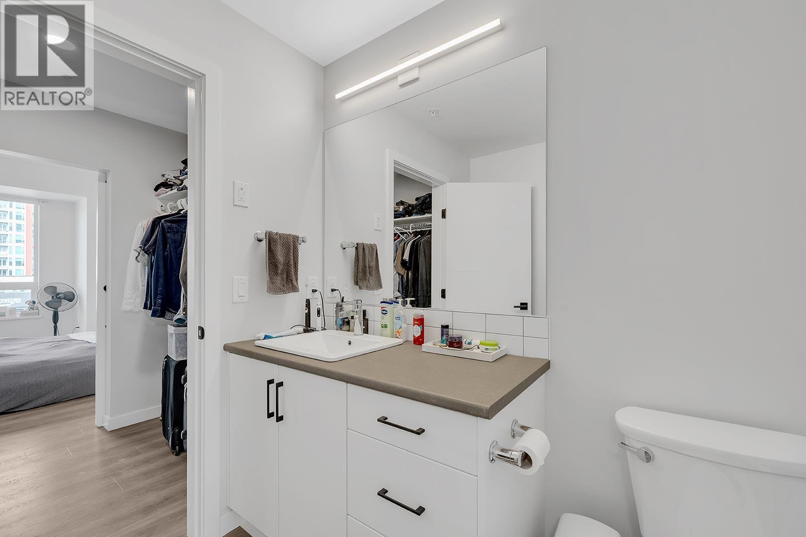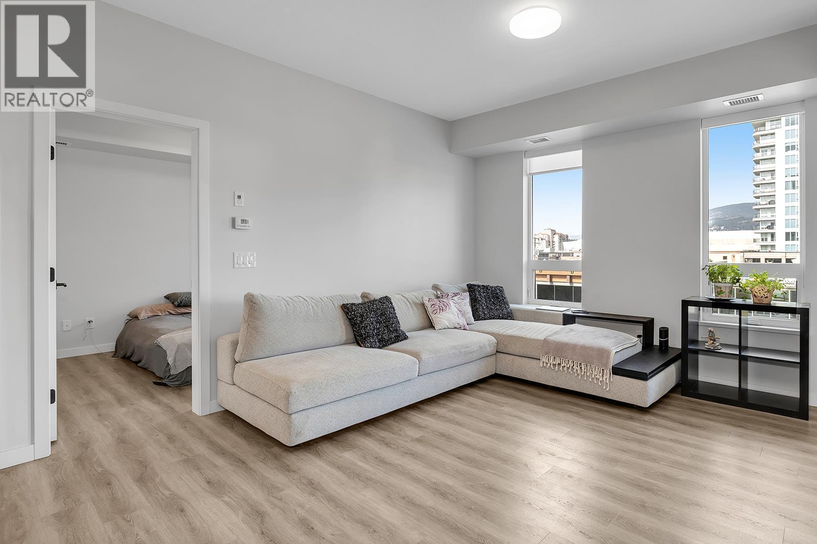 Welcome to this beautifully appointed 2-bed, 2-bath residence in the heart of downtown Kelowna. Thoughtfully designed with a split-bedroom layout, this home offers exceptional privacy and functionality. The bright, open-concept living space is complemented by a modern kitchen featuring stainless steel appliances and a large island with an eating bar, perfect for both everyday living and entertaining. The spacious primary suite includes a generous walk-through closet and a well-appointed 3-piece ensuite, while the second bedroom is ideal for guests, a home office, or additional living space. Step outside to the fully covered deck and take in stunning city and mountain views year-round. Additional highlights include in-unit laundry, central air, BBQ-friendly living, and a secure underground parking stall. Situated in a highly sought-after downtown location, you’re just steps from shopping, restaurants, entertainment, and the waterfront. Enjoy the best of Okanagan living with just a short stroll to Okanagan Lake. Call your favourite agent today to a schedule a viewing of your next home! (id:6769)