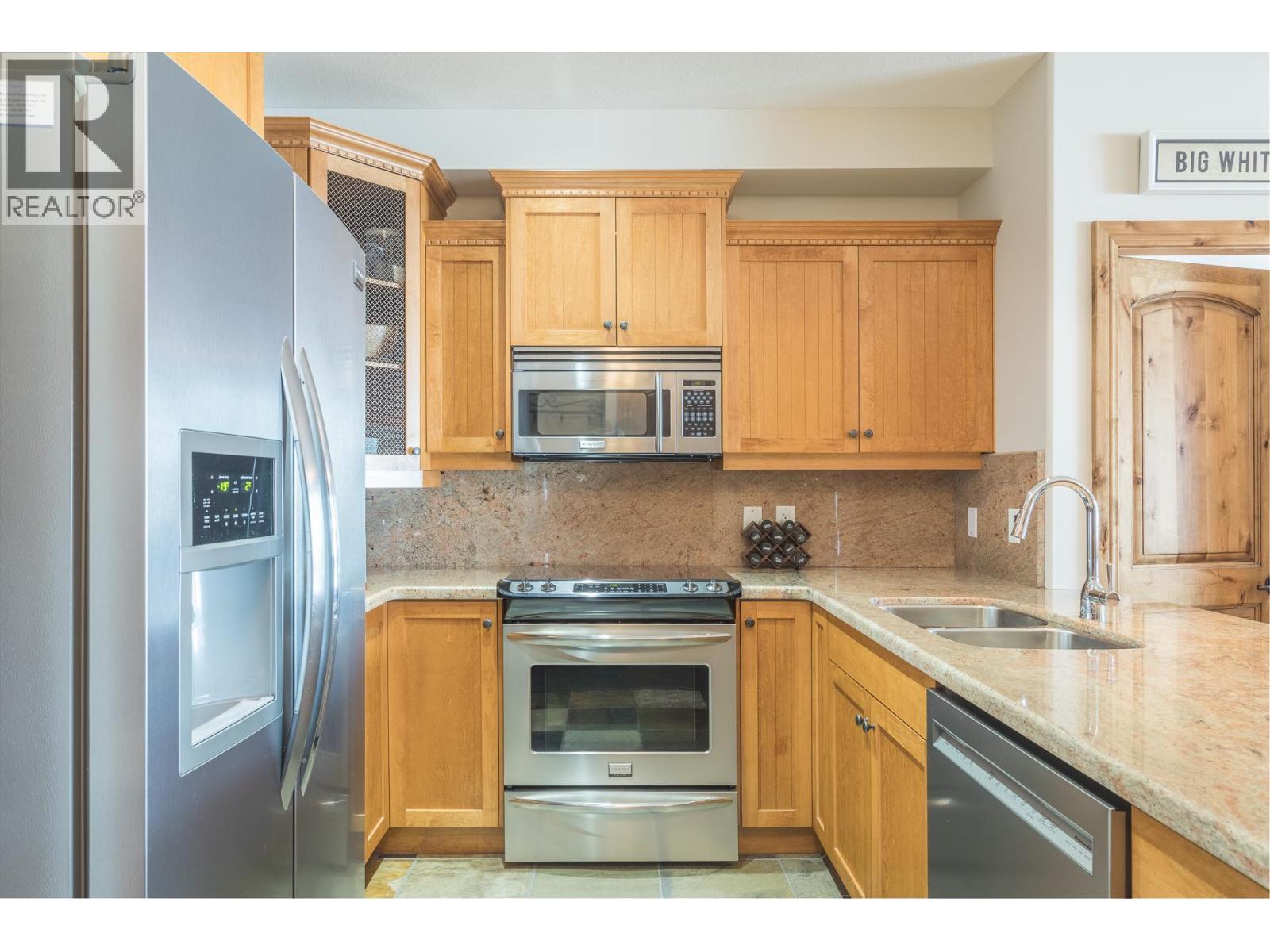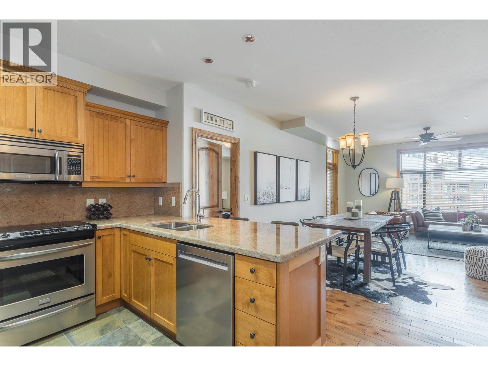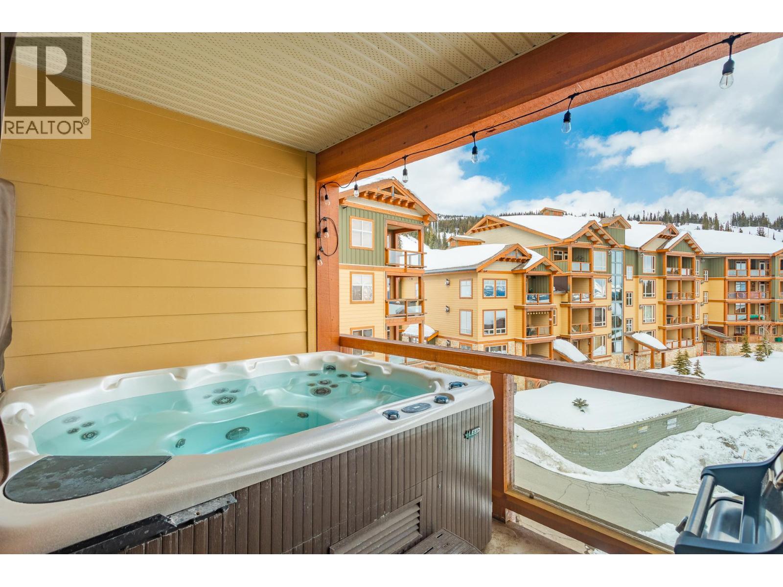 Welcome to your very own TOP FLOOR alpine retreat at Big White Ski Resort with your own PRIVATE HOT TUB! This 2 bedroom, 2 bathroom condo blends chalet charm with investor-friendly benefits, the Aspens offers true ski in/out access and sweeping mountain views that create a serene year round backdrop. The bright and welcoming open kitchen with excellent storage has granite counters and a sit up bar for entertaining. This leads into the dining and spacious living room anchored by a stone faced gas fireplace with built in storage and a large window that pours in natural light. A private balcony off the living room features a dedicated hot tub, a true highlight and perfect for apres ski soaks and Summer nights under the stars that extend your living space outdoors. The generously sized primary and second bedroom, sit on opposite ends of the unit for privacy, and the ensuite offers a glass door shower and ample storage, while the overall layout keeps entertaining and everyday living effortless. There is in-suite stacked laundry and a dedicated ski locker that keeps gear ready for the next run, with easy access to village restaurants shopping & The Market. There is NO GST on this home, short term rentals are permitted and Big White is exempt from foreign buyer and spec taxes, offering flexibility and peace of mind. Enjoy a lifestyle retreat that also performs as an income ready investment for ski enthusiasts and investors. (id:6769)
