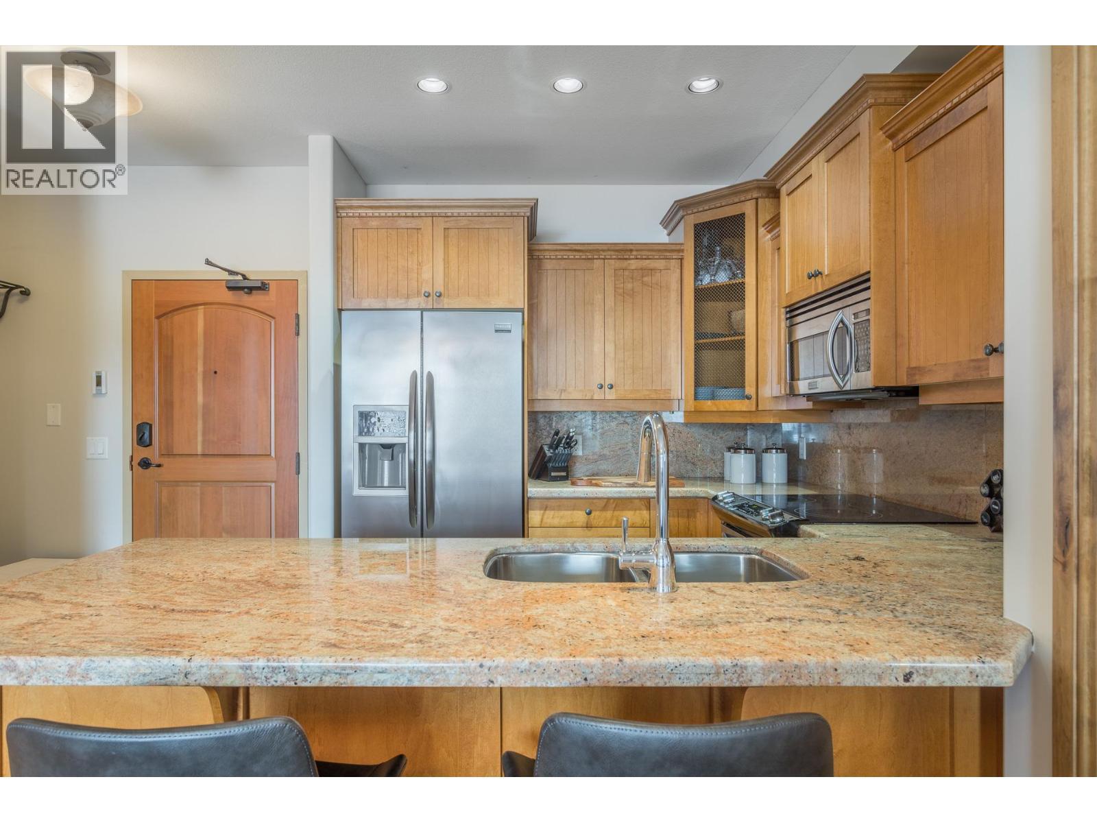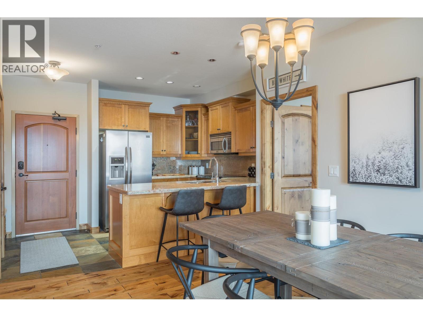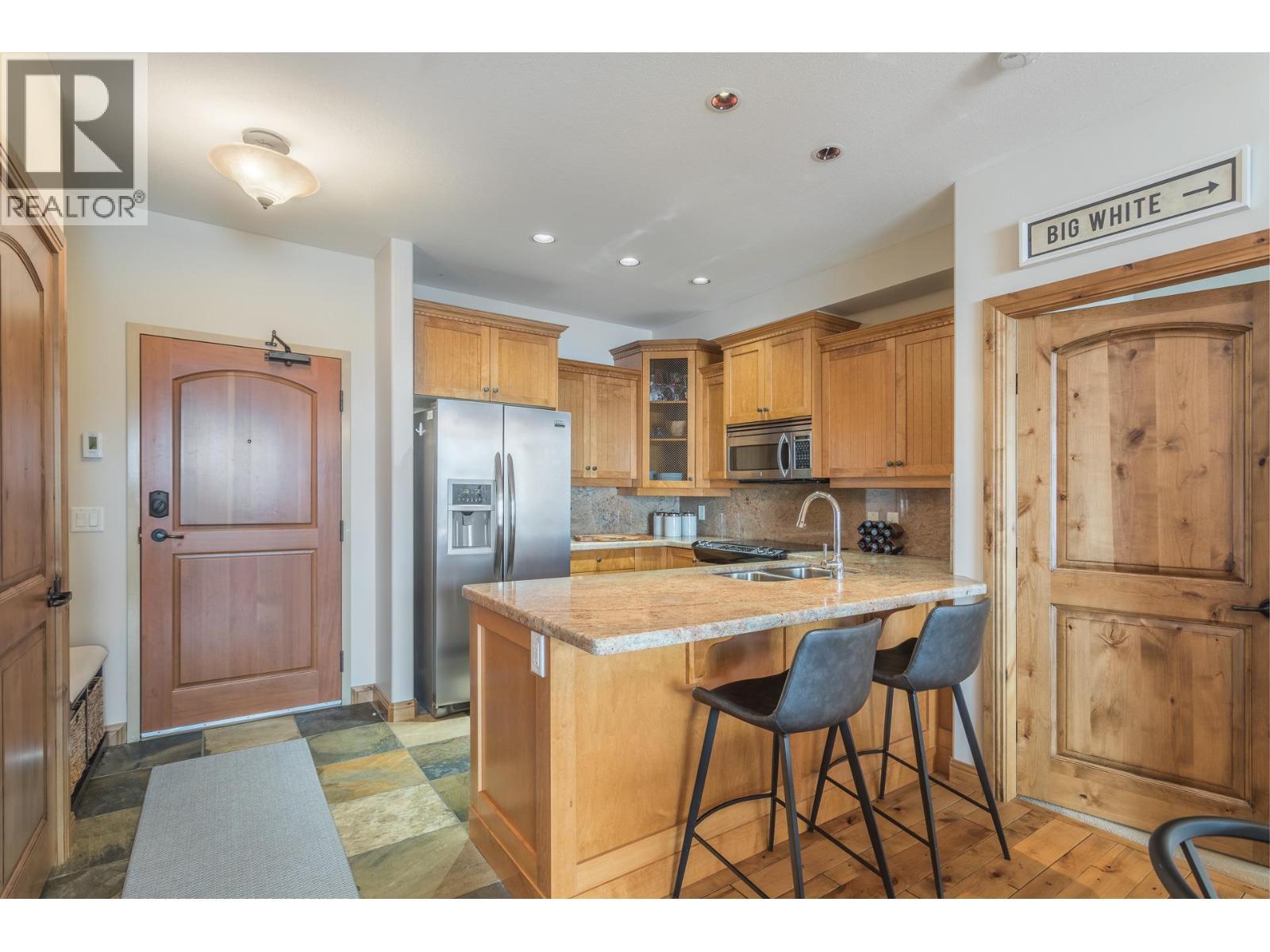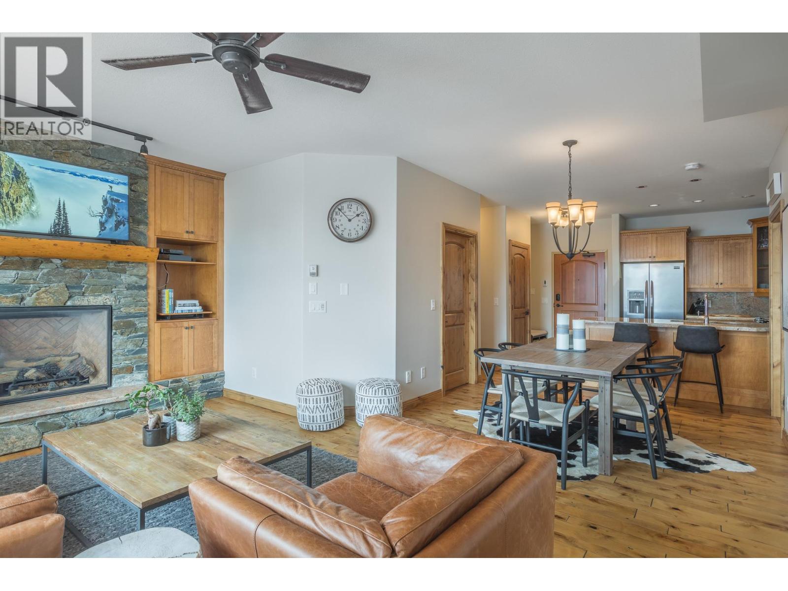 Welcome to your very own TOP FLOOR alpine retreat at Big White Ski Resort with your own PRIVATE HOT TUB! This 2 bedroom, 2 bathroom condo blends chalet charm with investor-friendly benefits, the Aspens offers true ski in/out access and sweeping mountain views that create a serene year round backdrop. The bright and welcoming open kitchen with excellent storage has granite counters and a sit up bar for entertaining. This leads into the dining and spacious living room anchored by a stone faced gas fireplace with built in storage and a large window that pours in natural light. A private balcony off the living room features a dedicated hot tub, a true highlight and perfect for apres ski soaks and Summer nights under the stars that extend your living space outdoors. The generously sized primary and second bedroom, sit on opposite ends of the unit for privacy, and the ensuite offers a glass door shower and ample storage, while the overall layout keeps entertaining and everyday living effortless. There is in-suite stacked laundry and a dedicated ski locker that keeps gear ready for the next run, with easy access to village restaurants shopping & The Market. There is NO GST on this home, short term rentals are permitted and Big White is exempt from foreign buyer and spec taxes, offering flexibility and peace of mind. Enjoy a lifestyle retreat that also performs as an income ready investment for ski enthusiasts and investors. (id:6769)